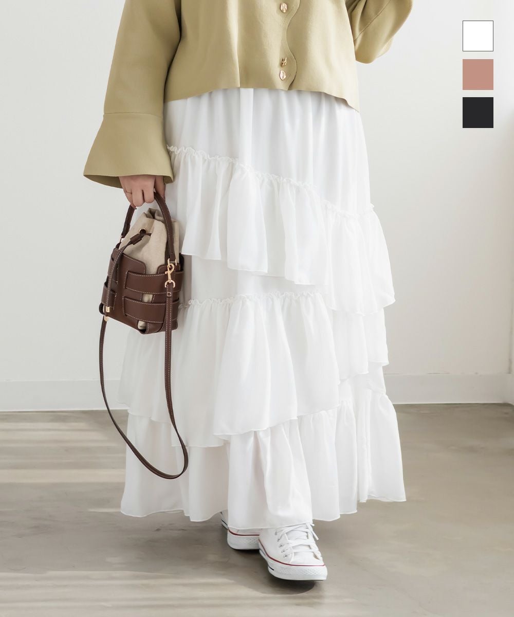 CLETTEオリジナルベルト付きギャザーロングスカート