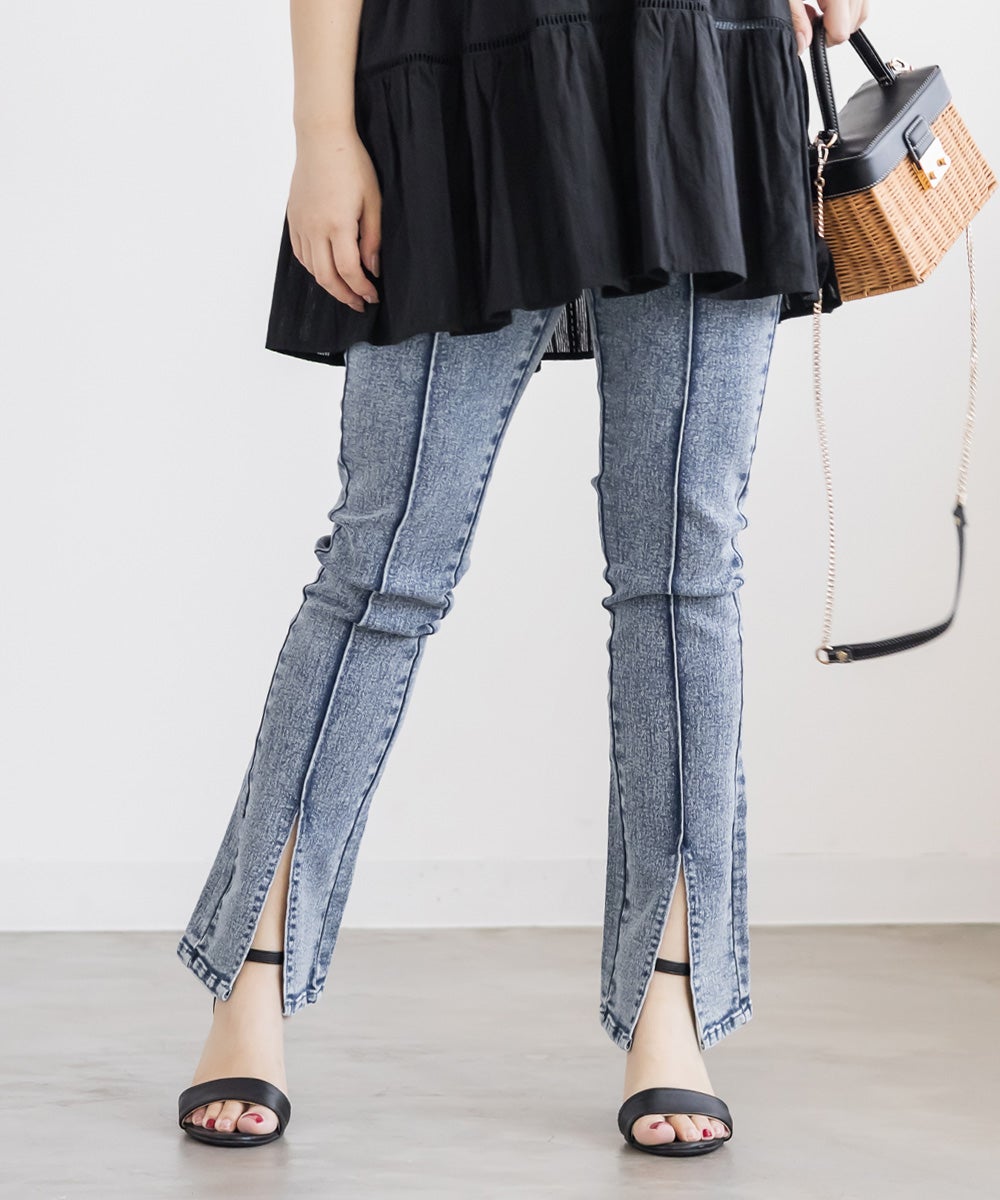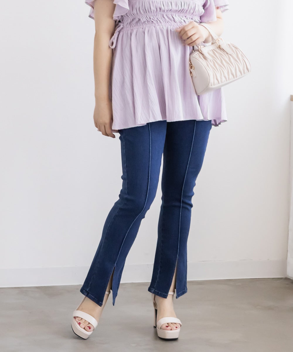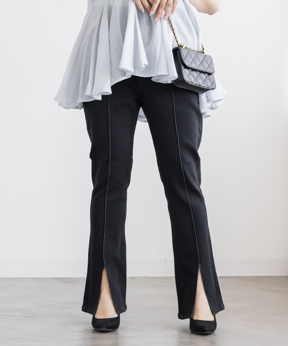 CLETTEオリジナルストレッチデニムスリットフレアパンツ