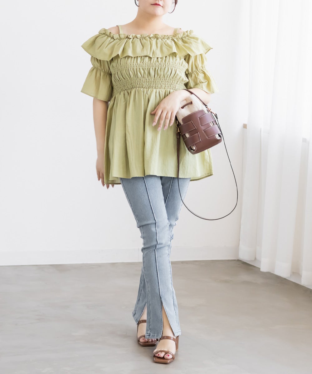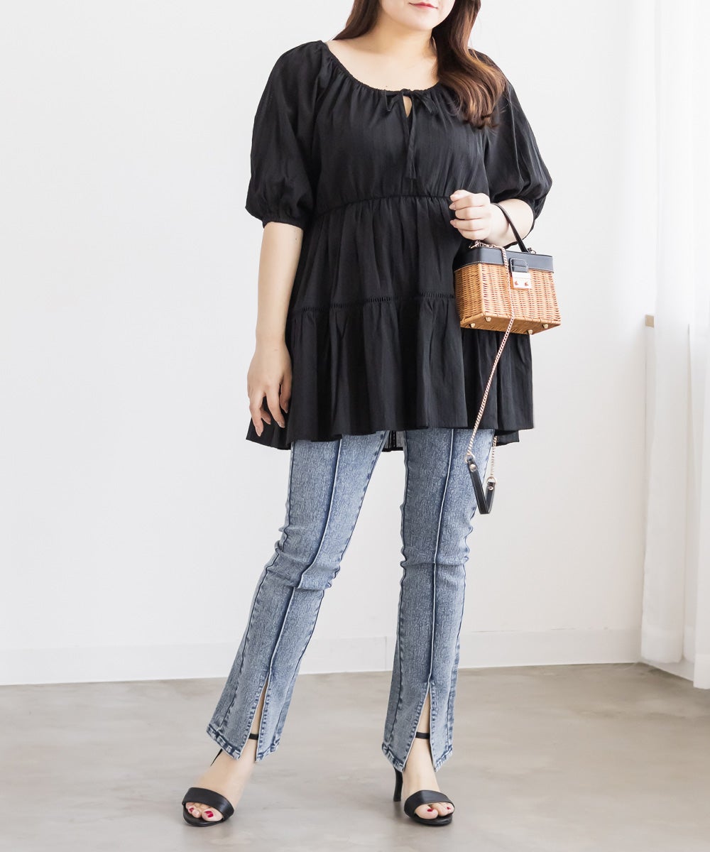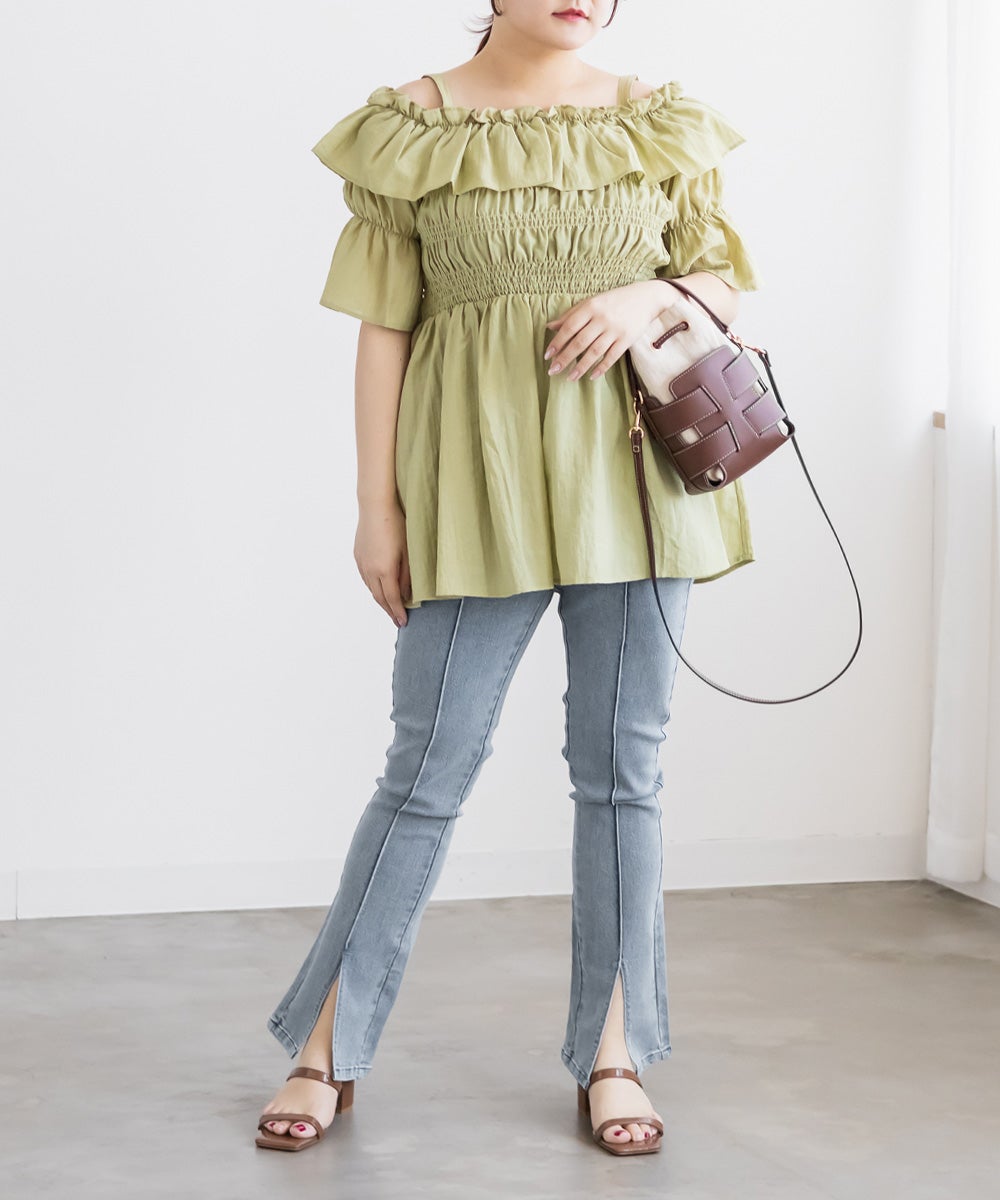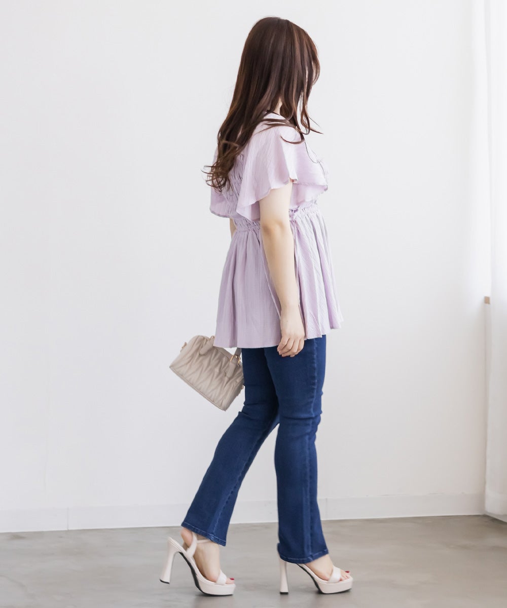 CLETTEオリジナルストレッチデニムスリットフレアパンツ