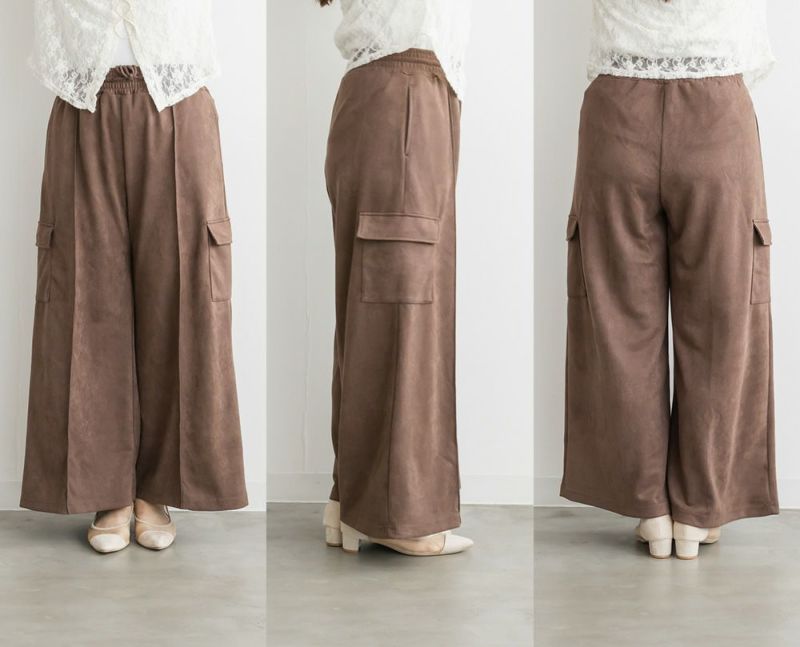 3Lを着用してちょうどいいサイズでした。程よくゆとりがありつつすっきり見えるシルエットで、楽ちんな着心地です!スエード生地がポイントで、シンプルなトップスとも相性がいいのでおすすめです。落ち感素材で、程よくワイドなので脚のラインを拾わずリラックスして着られます!カジュアルめなデザインだけど、シルエットと生地が大人っぽくきちんと見えするのも嬉しい!ウエストゴムでストレスフリーに穿けて、長時間のお出かけにも快適です◎今年トレンドのスエードアイテムは持っておきたい1本です!