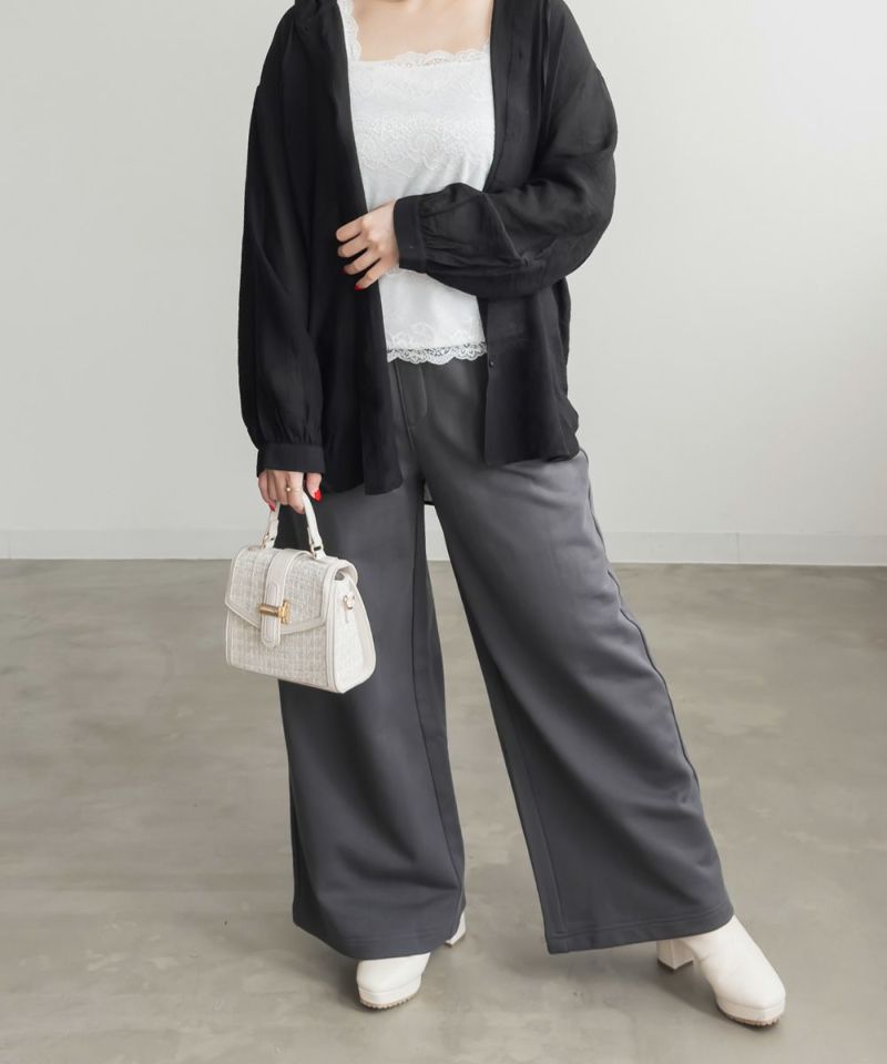 3Lサイズを着て、程よくゆとりを持って着られるシルエットでした!らくちんなスエット生地とワイドなシルエットでトレンド感と動きやすさを両立した1本です!ウエストは紐で調節できるのも嬉しいです。程よくルーズなフォルムで足のラインを拾いにくく、スタイルアップ効果も抜群です!オールシーズン着回しできる裏毛素材なので、着回しがたくさんできそう◎今年らしくシャツ・カーディガンと合わせたり、短丈のトップスとも相性良く着ていただけます♪