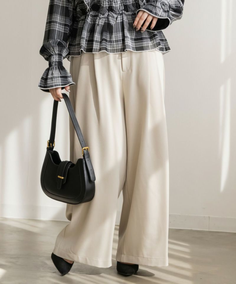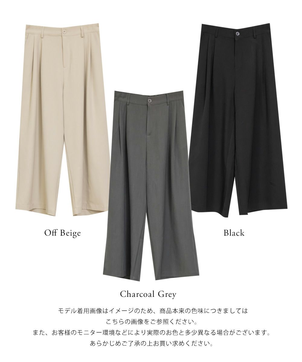 LLを着用してちょうどいいサイズでした。ゆとりがありつつすっきり見えるシルエットで、楽ちんな着心地です!ワイドパンツだけどフェミニンなスタイルになれるアイテムで、可愛い系のトップスとも、シンプルなトップスとも相性がいいのでおすすめです。オールシーズン使える便利なワイドパンツです!