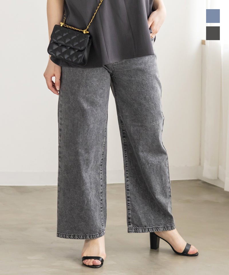 3Lサイズを着用してジャストサイズでした。3Lのサイズ感です。後ろゴムで楽に着用できて、セミワイドなシルエットが大人ぽくすっきり見えしました◎窮屈感はなく、綺麗めな印象にもコーデできます。シンプルなコーディネートに合わせやすいデニムは1本は持っておきたいアイテムです!年中使える生地感なのも嬉しい♪