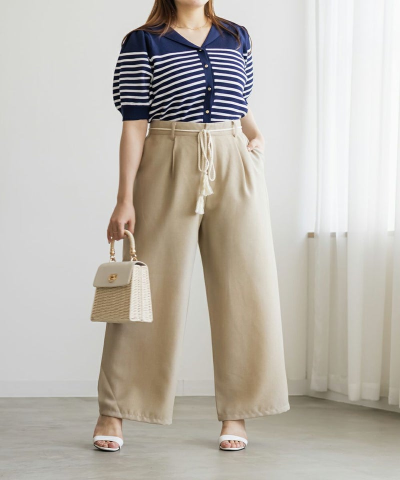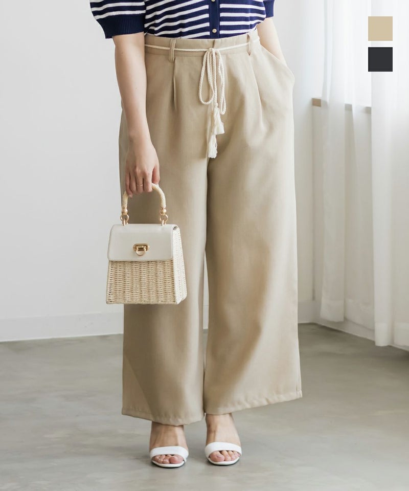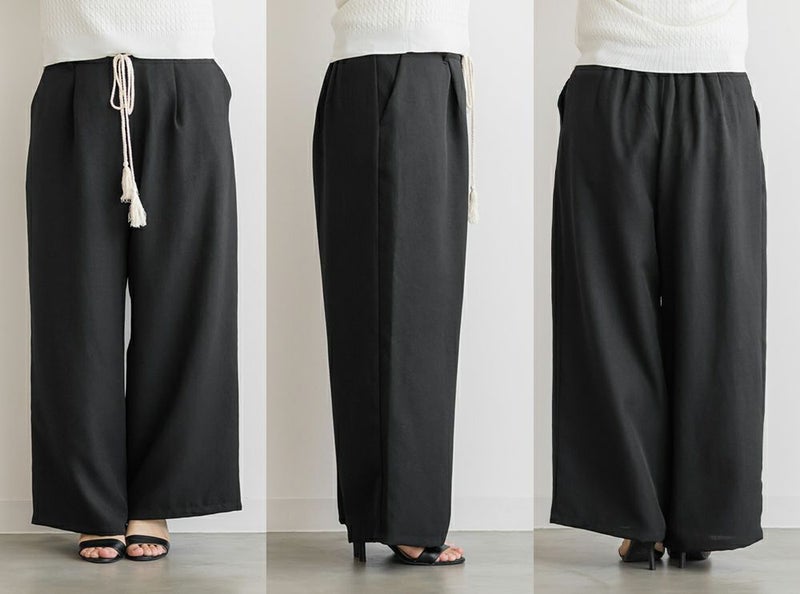 3Lサイズで腰まわりや太ももにも少しゆとりがあり、セミワイドパンツくらいのシルエットで動きやすさもばっちりでした。さらっと軽やかなリネンライク素材で、夏でも快適に過ごせる履き心地◎脚のラインを拾わず、自然に体型カバーしてくれます♪ウエストは後ろゴム仕様で楽ちん!さらにフロントのリボンデザインがコーデのアクセントになってくれて、トップスをインしてもバランスよく着こなせました!