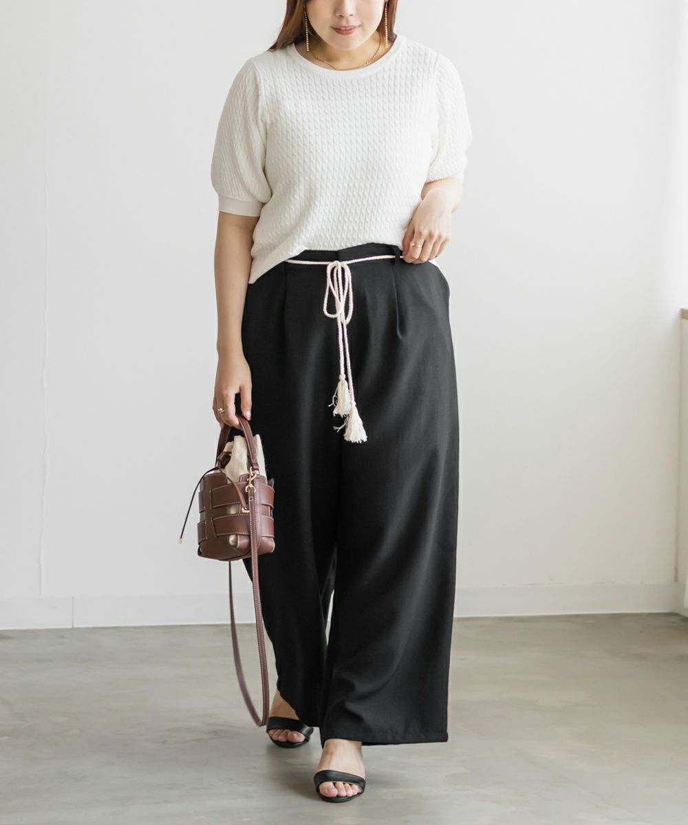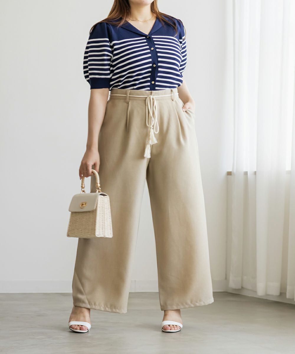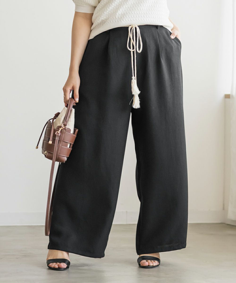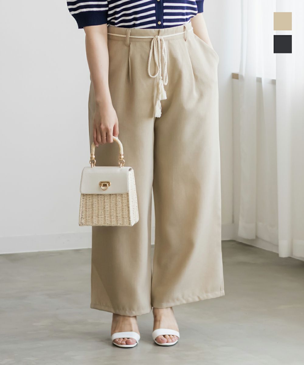 ウエストリボンリネンライクワイドパンツ ウエストリボンリネンライクワイドパンツ