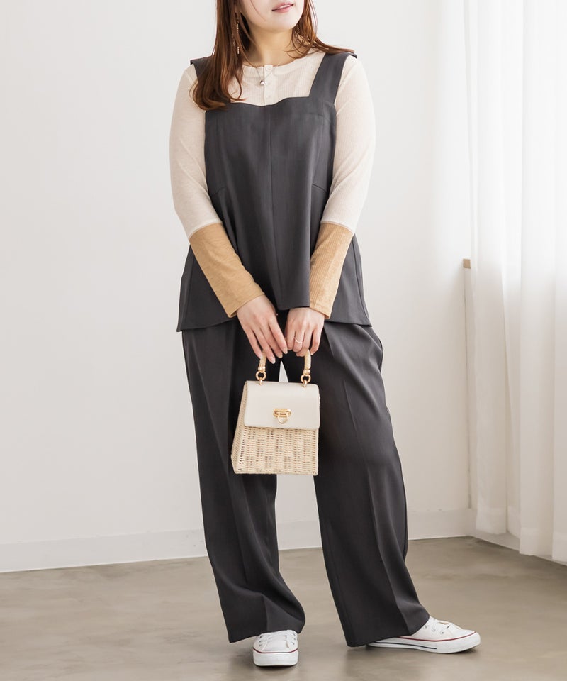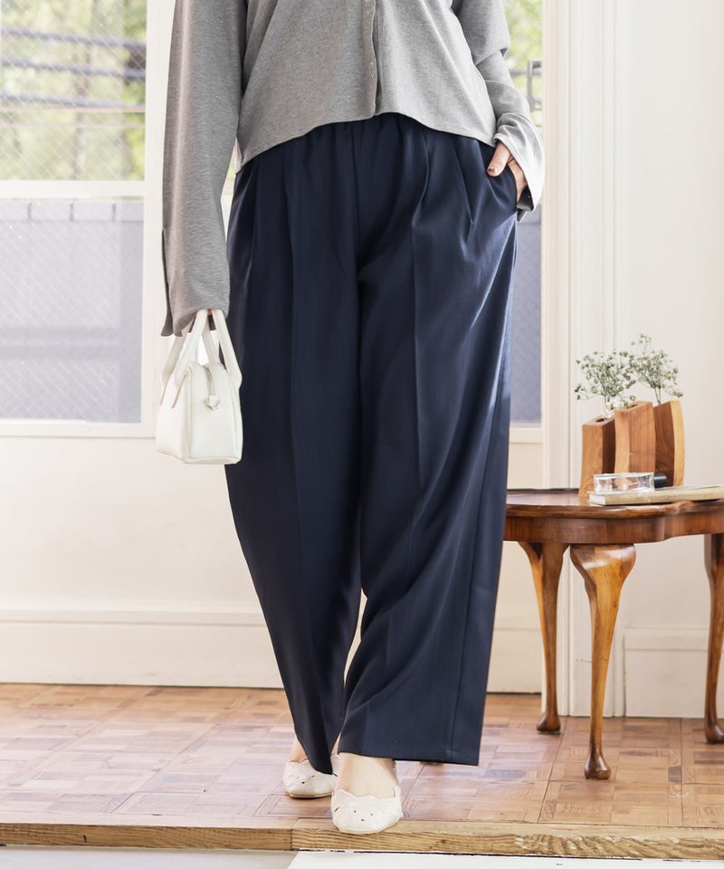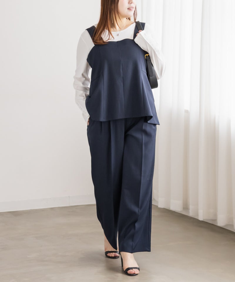 ワイドシルエットでも広がりすぎず、落ち感のある素材できれいめな雰囲気に◎ ブラウスときちんと感のあるコーデはもちろん、カットソー合わせで程よくラフに着こなすのもおすすめです。オンにもオフにも活躍してくれそうな、着回し力の高いパンツだと思いました。同生地のビスチェとセットアップにして大人カジュアルなコーデにするのもお勧めです。