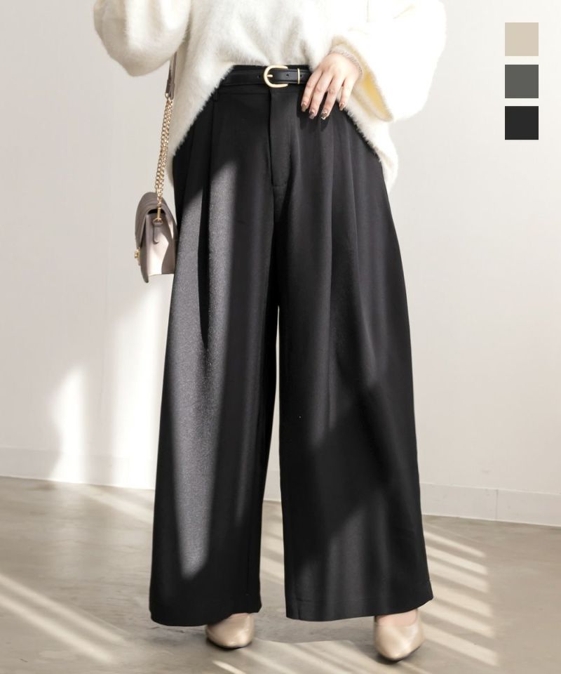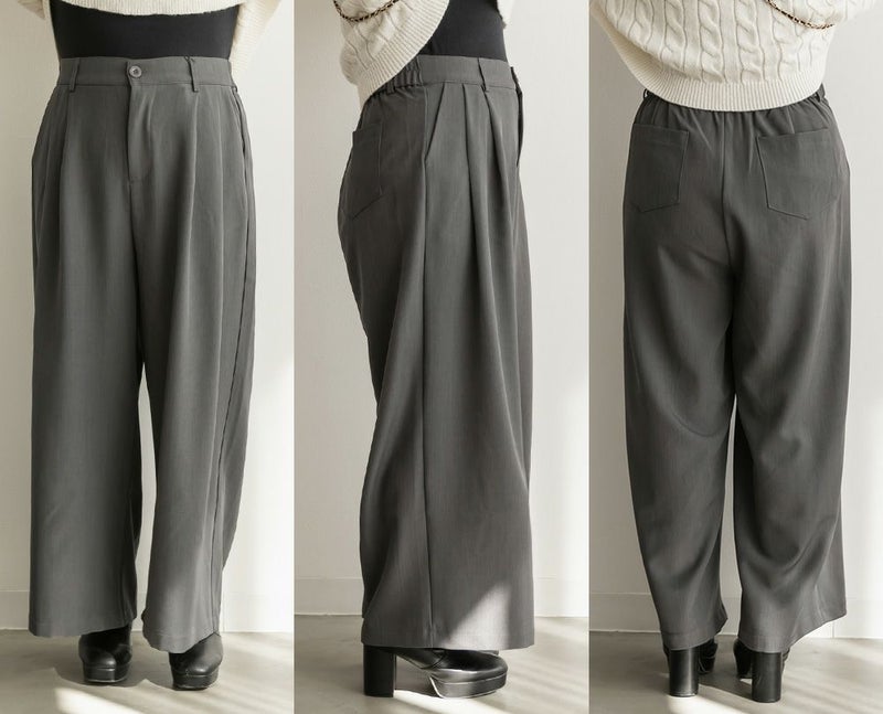 LLを着用してちょうどいいサイズでした。ゆとりがありつつすっきり見えるシルエットで、楽ちんな着心地です!ワイドパンツだけどフェミニンなスタイルになれるアイテムで、可愛い系のトップスとも、シンプルなトップスとも相性がいいのでおすすめです。オールシーズン使える便利なワイドパンツです!