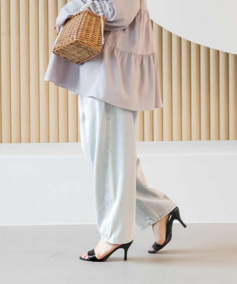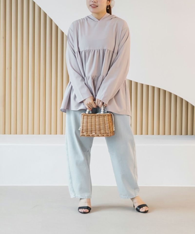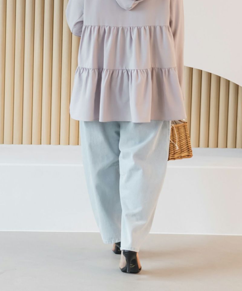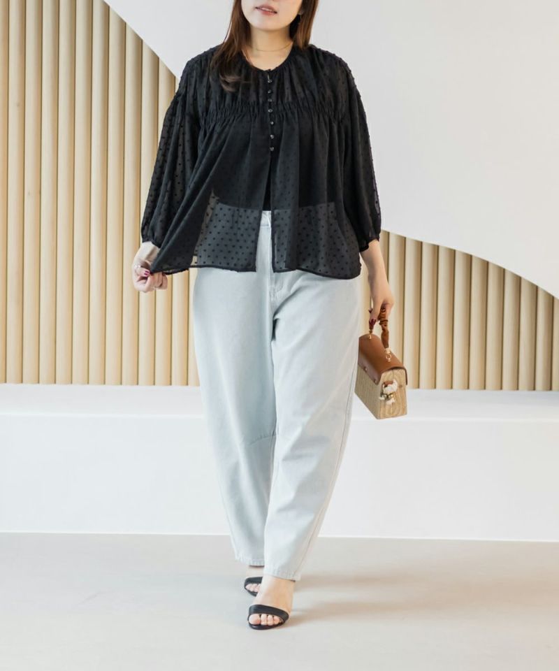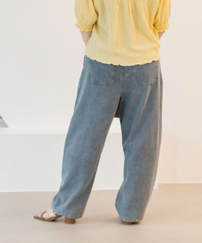 3Lを着てちょうどいいサイズでした。ウエストゴムなのでらくちんに着脱できました!トレンド感たっぷりのバレルレッグのワイドめなデニムパンツで、着るだけでお洒落な印象です◎涼し気な夏向きのデニムで快適に過ごせそうです♪カジュアルなデニムだけどキレイめにも合わせやすいシルエットでジャケットやシャツ・ブラウスと相性良くコーデできます!