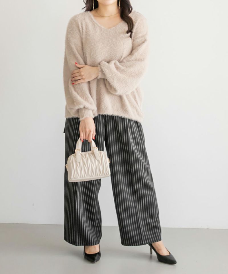 3Lを着用してちょうどいいサイズでした。程よくゆとりがありつつすっきり見えるシルエットで、楽ちんな着心地です!今っぽいストライプ柄がポイントで、シンプルなトップスとも相性がいいのでおすすめです。さらっとした落ち感素材で、程よくワイドなので脚のラインを拾わずリラックスして着られます!きちんと見えするのも嬉しい!後ろウエストゴムでストレスフリーに穿けて、長時間のお出かけにも快適です◎サイドにタブデザインがあって紐の垂れた感じもかわいい!オールシーズン着られて着回しも抜群です!