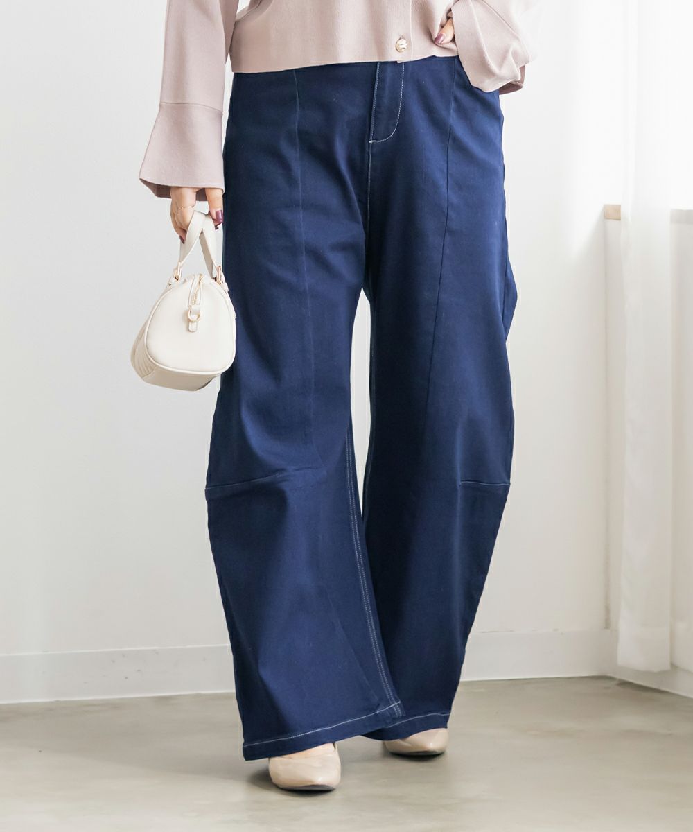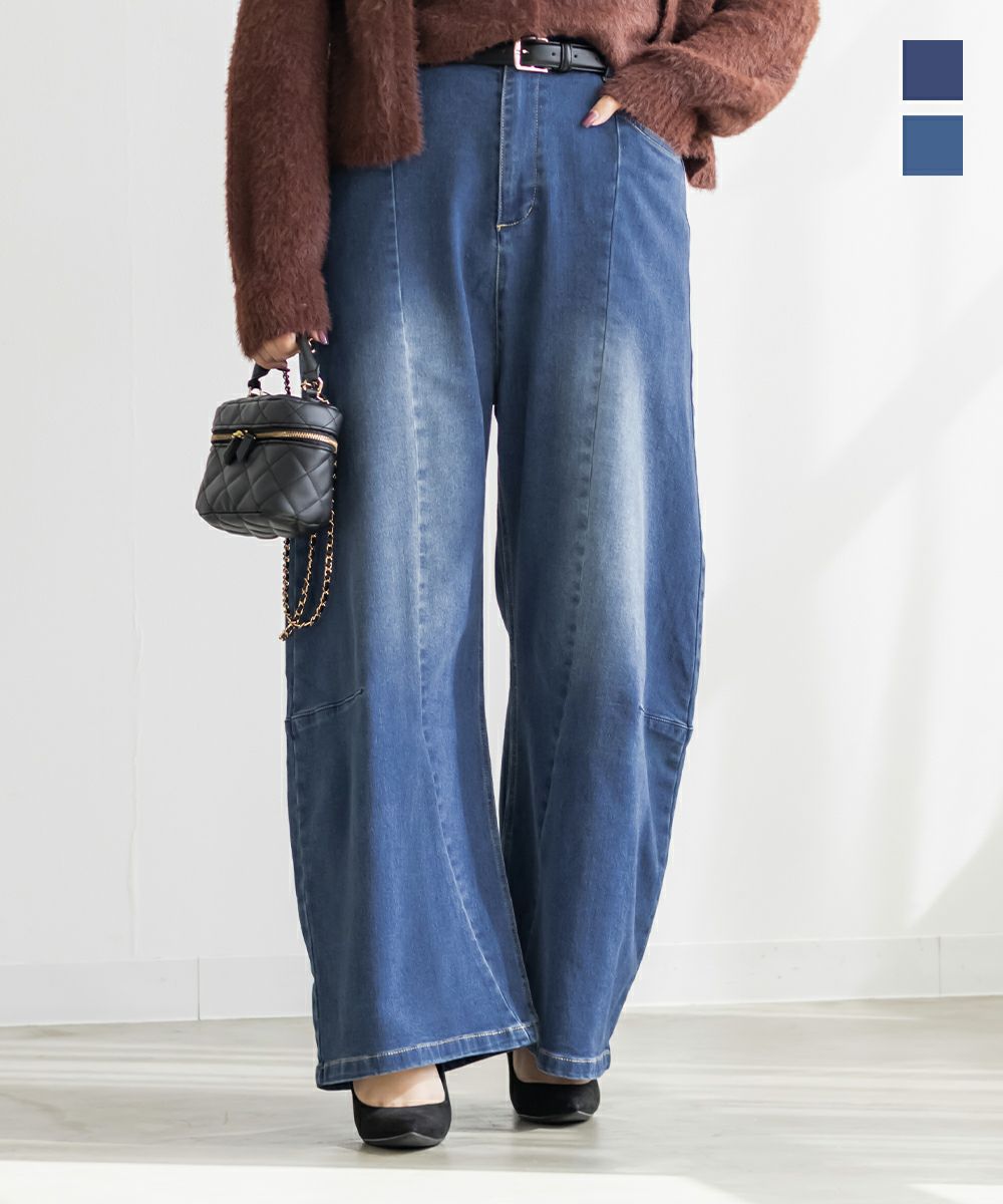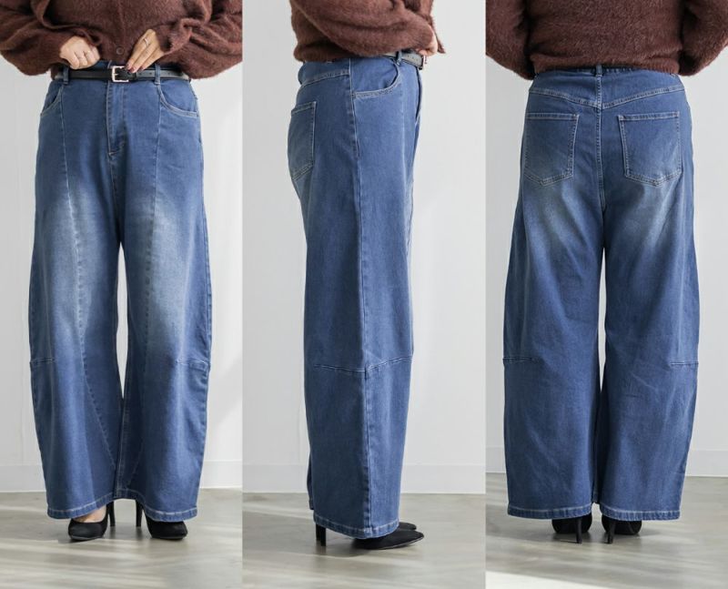 3Lサイズを着用して、ラクに動けました!トレンド感たっぷりのシルエット感がポイントのデニムパンツで、着るだけでお洒落な印象です!キレイめにも合わせやすいシルエットなので、ジャケットやシャツ・ブラウスと相性良くコーデできます◎裏は温かみのある起毛素材で、真冬でも着られそうです!ボトム選びに悩んでる方にお勧めしたい1枚です。