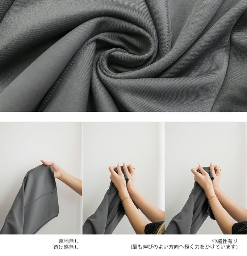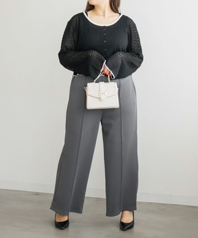 3Lサイズを着用してちょうどいいサイズ感でした。いつも通りのサイズ選びで問題なさそうです◎ゆとりがありつつすっきり見えるストレートシルエットで、綺麗めな印象で着用出来ます。センターシムがあることですっきり縦長な印象です。軽く伸縮性のある生地感でとても楽ちんな着心地です!お仕事にもつかえるシンプルなシルエットで、オールシーズン使える便利な1枚です!