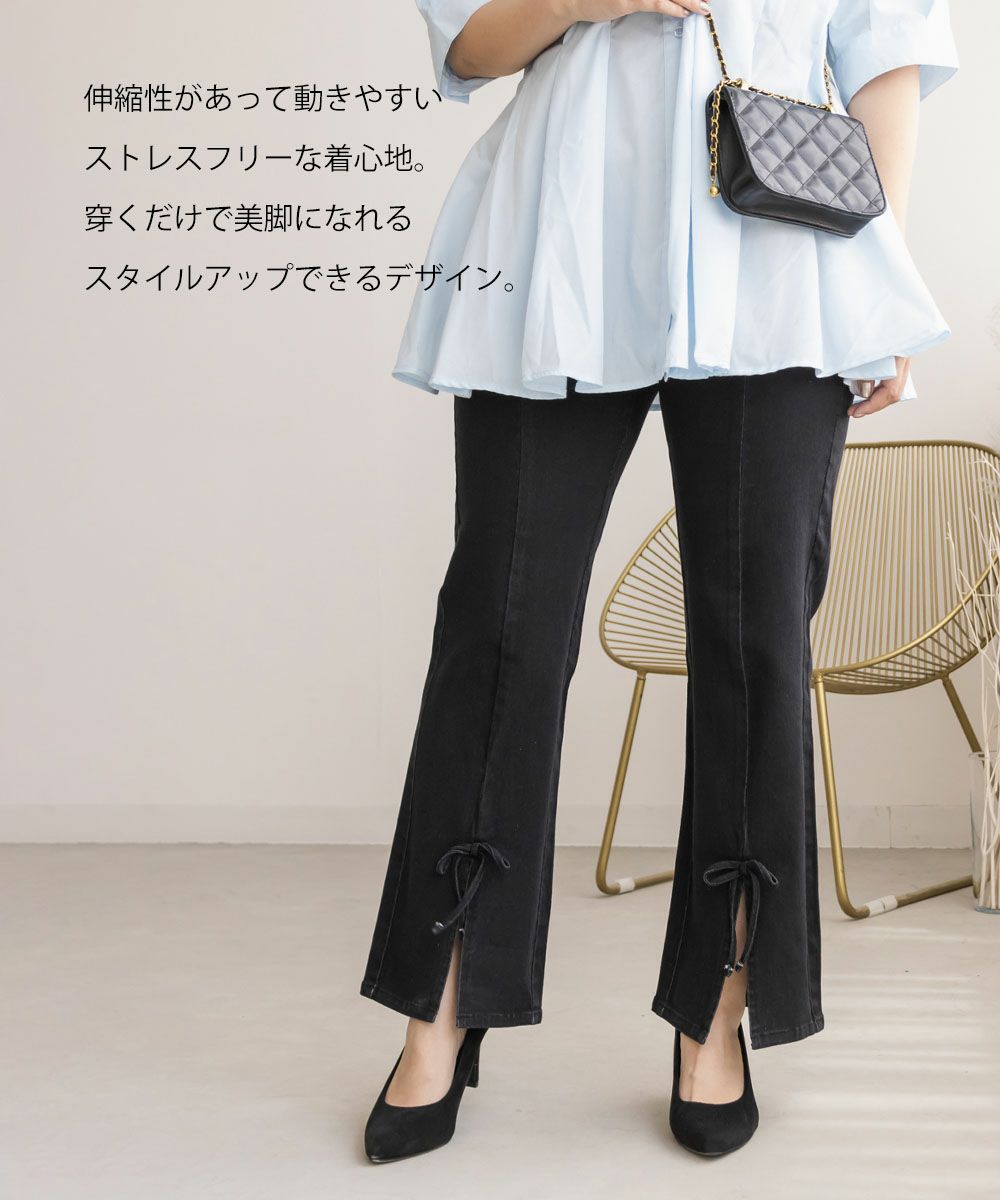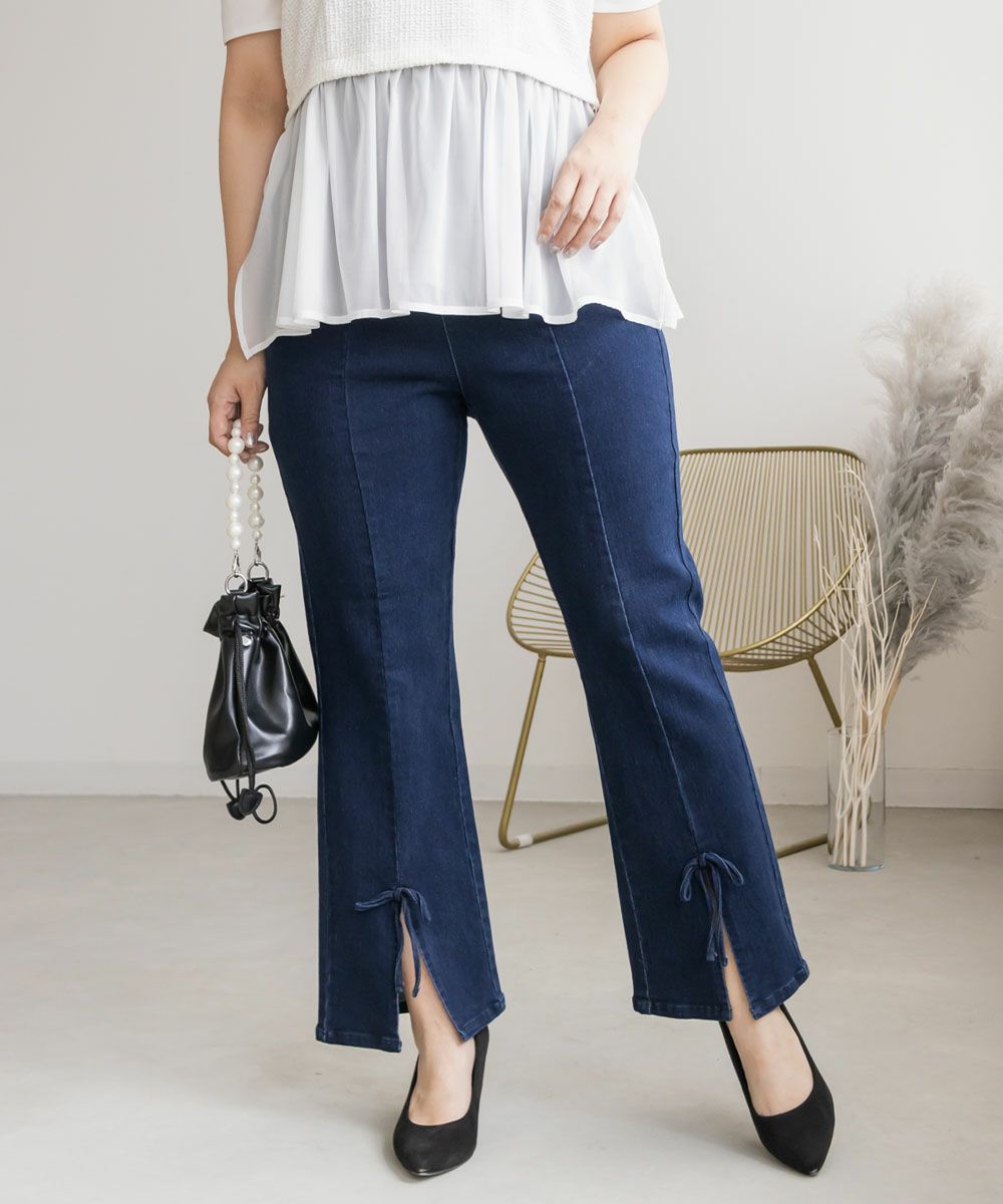 CLETTE オリジナル 裾リボン ストレッチ デニム パンツ LL 3L 4L クレット 楽ちん CLETTEオリジナル★裾リボンストレッチデニムパンツ