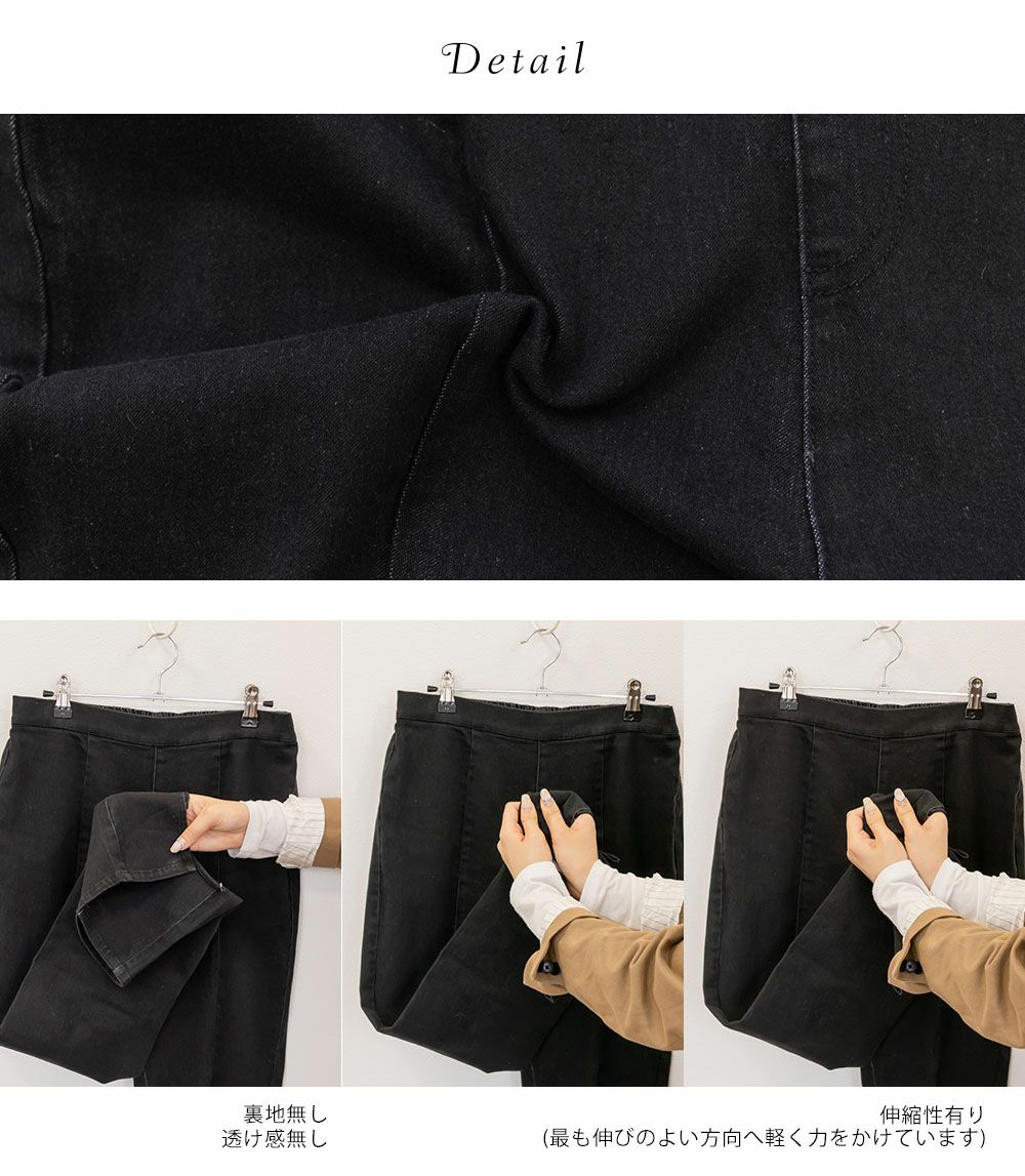 生地感 程良くストレッチの効いた柔らかいデニム素材です。