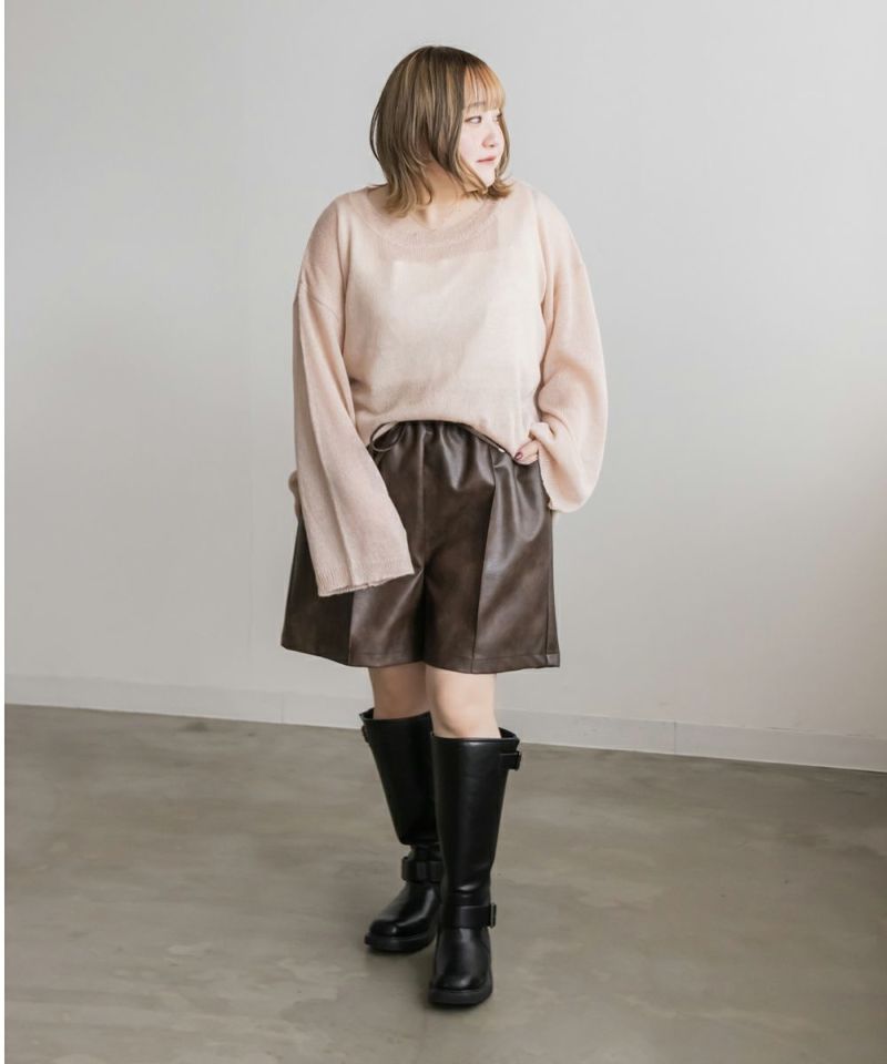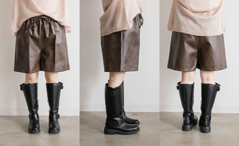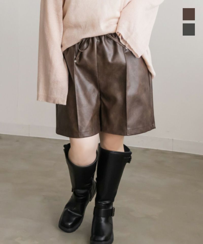 フェイクレザー ショート パンツ クレット プラスサイズ 3L 4L カジュアル トレンド 無地 オールシーズン フェイクレザーショートパンツ