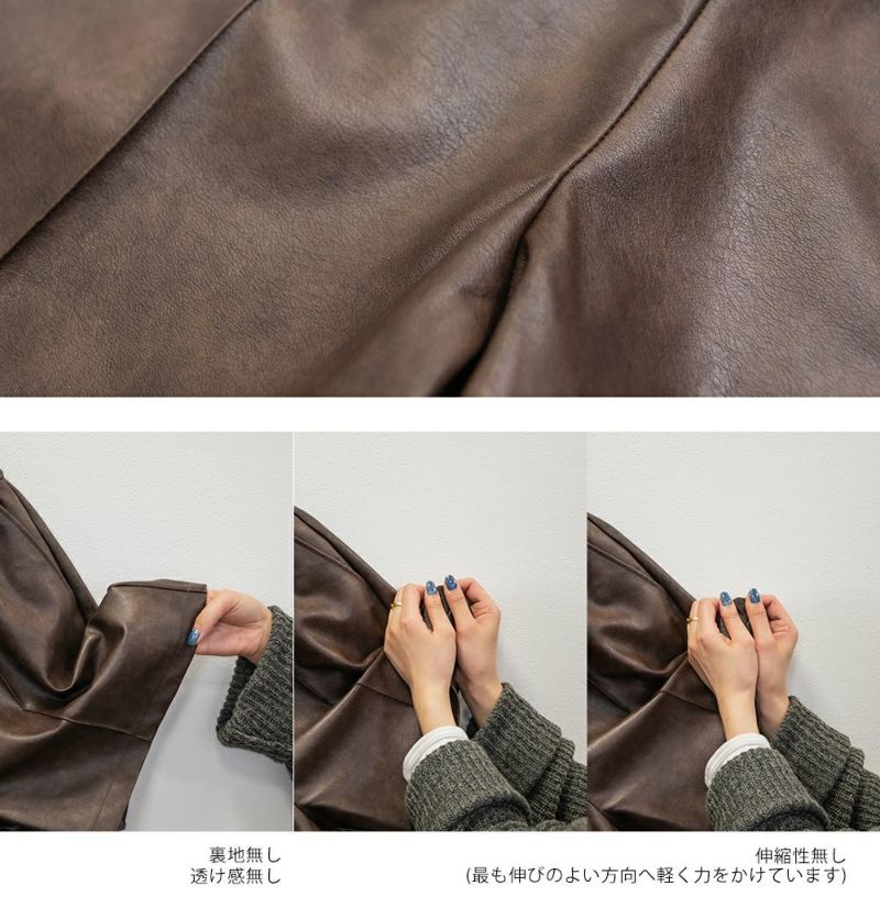 生地感 ハリのあるしっかりとしたフェイクレザー素材です。