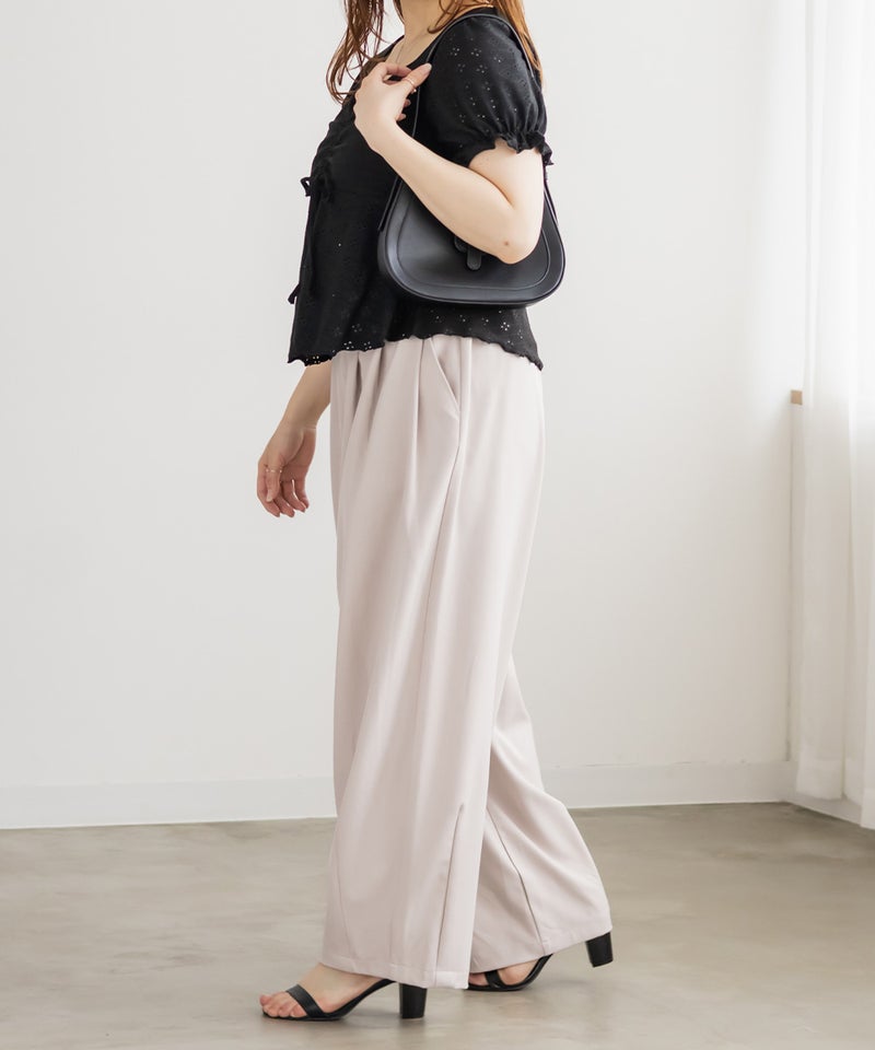 3Lサイズを着用してちょうど良いサイズ感でした。いつも通りのサイズ選びで問題なさそうです◎ウエストは紐で調節可能なので、幅広いサイズ感で着用出来ます!ゆとりがありつつすっきり見えるシルエットで、楽ちんな着心地です!ワイドパンツだけどフェミニンなスタイルになれるアイテムで、可愛い系のトップスとも、シンプルなトップスとも相性がいいのでおすすめです。少しコクーンのシルエットが今っぽく、オールシーズン使える便利な1枚です!