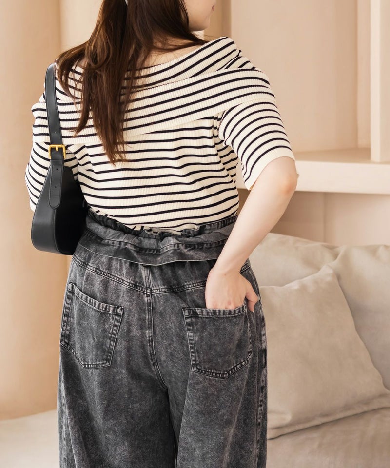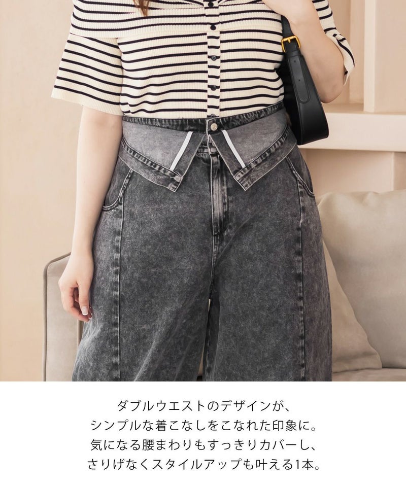 3Lサイズを着用して、ラクに動けました!ダブルウエストデザインが程よくお腹まわりをカバーしてくれて、インスタイルでおしゃれ見えします♪ハイウエストでかなりスタイルアップして見えて、トップスインとの相性も抜群です!もちろんインせずに着ても可愛いデニムシルエット・カラーなので着回し力も高いです。脚のラインを拾わないカーブ感で、簡単に今っぽい雰囲気になれる1本です!