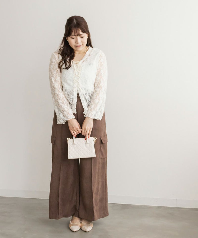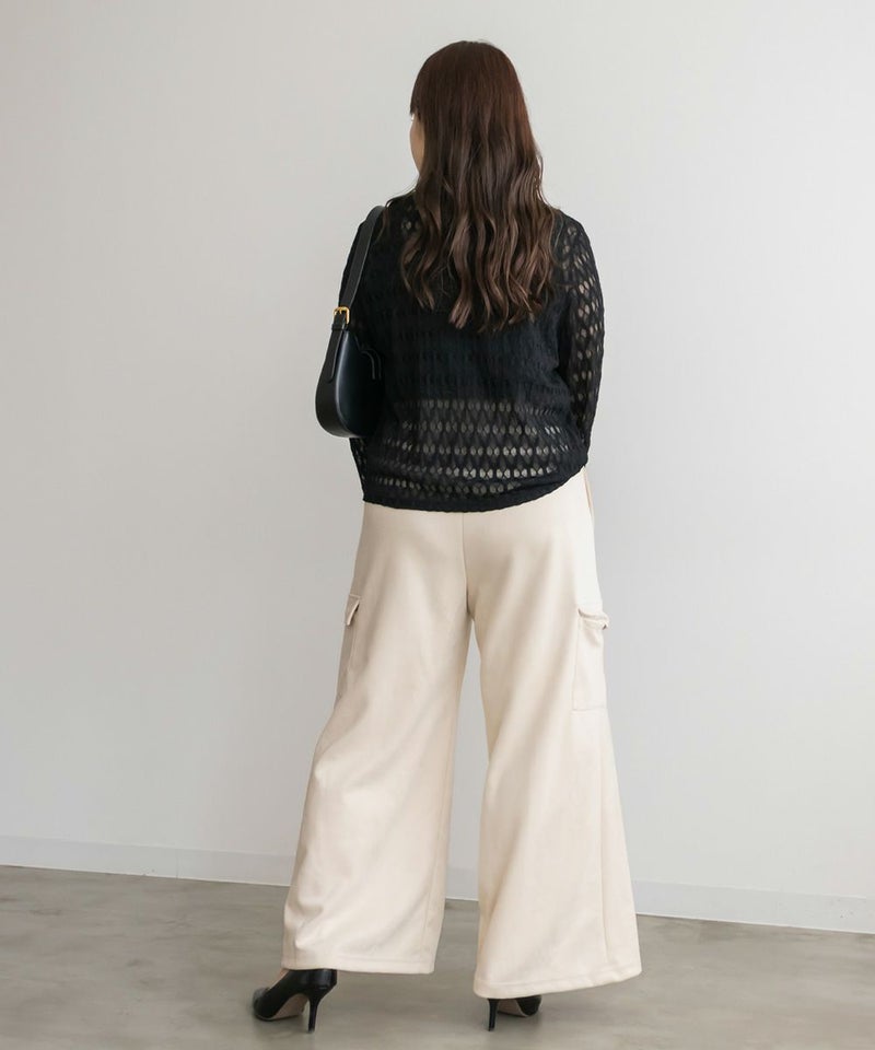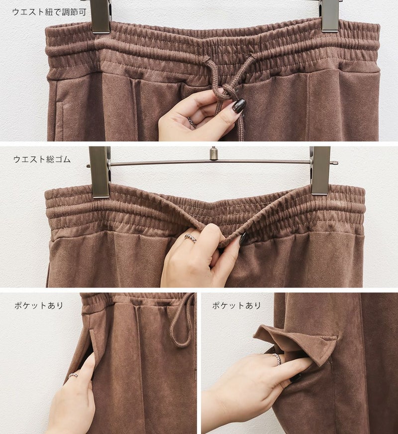 3Lを着用してちょうどいいサイズでした。程よくゆとりがありつつすっきり見えるシルエットで、楽ちんな着心地です!スエード生地がポイントで、シンプルなトップスとも相性がいいのでおすすめです。落ち感素材で、程よくワイドなので脚のラインを拾わずリラックスして着られます!カジュアルめなデザインだけど、シルエットと生地が大人っぽくきちんと見えするのも嬉しい!ウエストゴムでストレスフリーに穿けて、長時間のお出かけにも快適です◎今年トレンドのスエードアイテムは持っておきたい1本です!