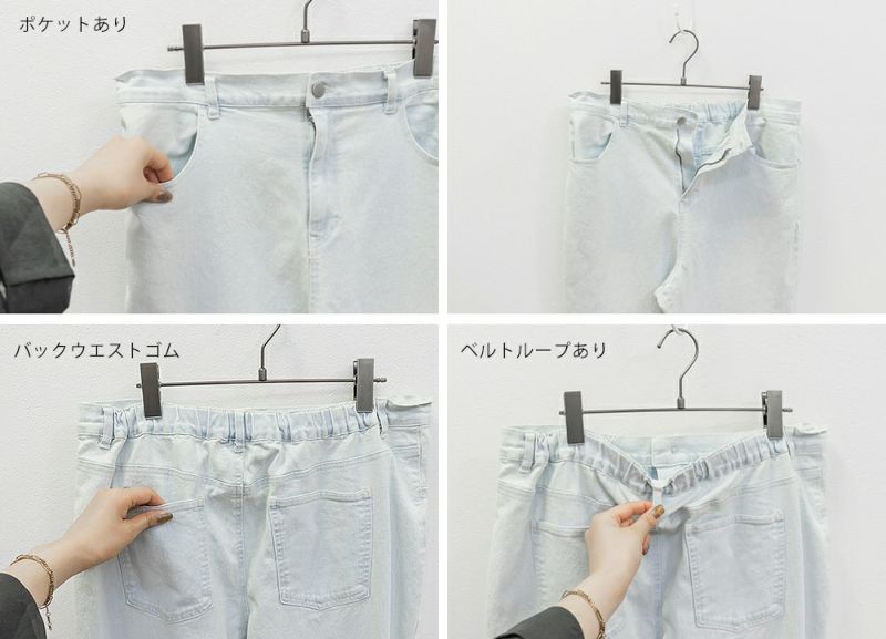 3Lサイズを着用してぴったりのサイズ感でした。ストレッチが効いていて窮屈感のない着心地です!デニムでもカジュアルになりすぎずに女性らしい印象になれるフレアシルエットで、美脚に見えるのでどんなトップスでも合わせやすい形なのが嬉しいです♪定番のデニムカラーでオールシーズン使えて1本あると便利なデニムパンツです。