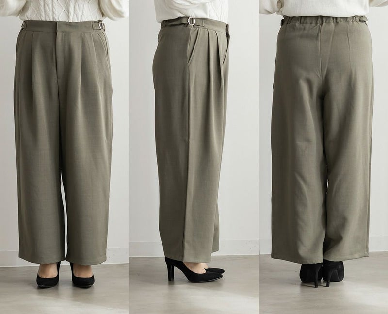 3Lサイズを着用してちょうどいいサイズ感でした。いつも通りのサイズ選びで問題なさそうです。ゆとりがありつつすっきり見えるシルエットで、楽ちんな着心地です!どんなトップスとも相性良く着られて、コーデに困らないのが嬉しいです◎ウエスト部分にベルトが付いたデザインで、短丈のアイテムと合わせたときにポイントになります!普段使いはもちろん、お仕事にもおすすめでオールシーズン使える便利な1枚です!