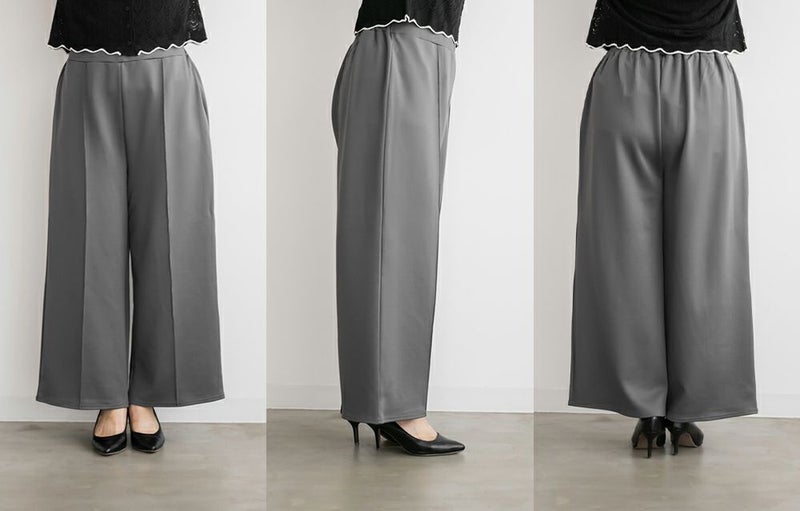 3Lサイズを着用してちょうどいいサイズ感でした。いつも通りのサイズ選びで問題なさそうです◎ゆとりがありつつすっきり見えるストレートシルエットで、綺麗めな印象で着用出来ます。センターシムがあることですっきり縦長な印象です。軽く伸縮性のある生地感でとても楽ちんな着心地です!お仕事にもつかえるシンプルなシルエットで、オールシーズン使える便利な1枚です!