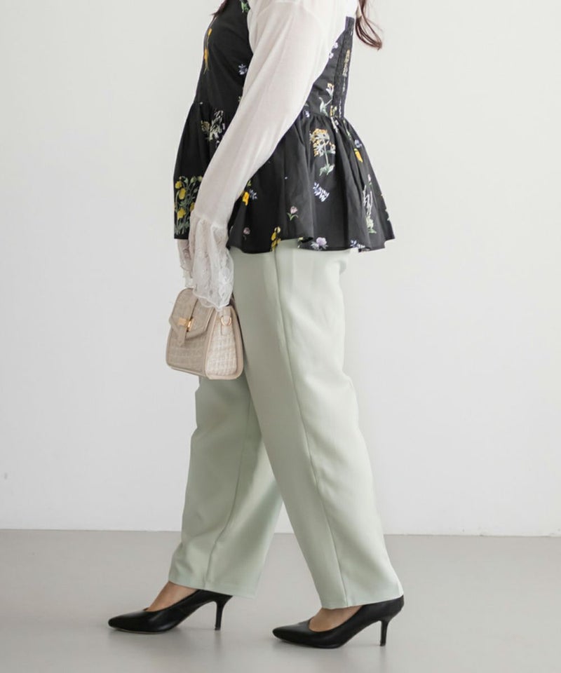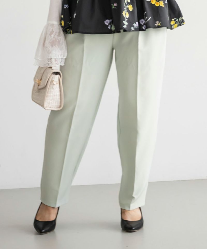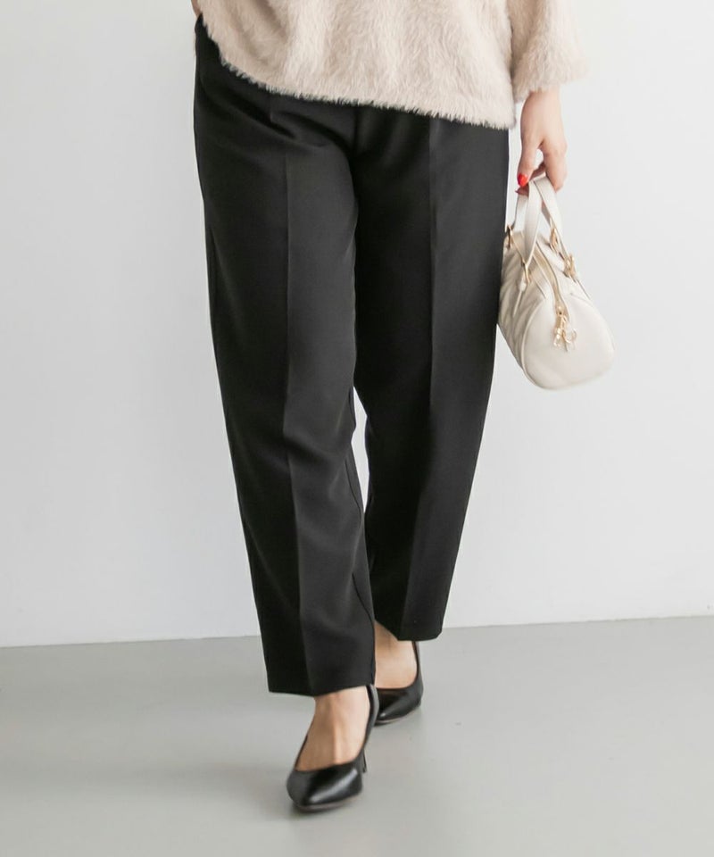 3Lサイズを着用してちょうどいい着心地でした!足元に向かってすっきり細くなるテーパードシルエットで美脚効果のある1枚です◎後ろウエストゴム仕様で窮屈感のない着心地で、さらりとした程よくしっかりとした生地なのでオールシーズン着まわせます!普段使いはもちろん、お仕事や綺麗目な服装が必要なシーンでも活躍しそうです♪