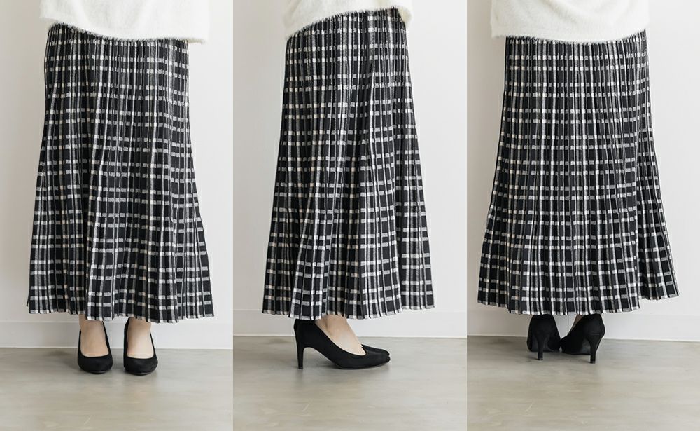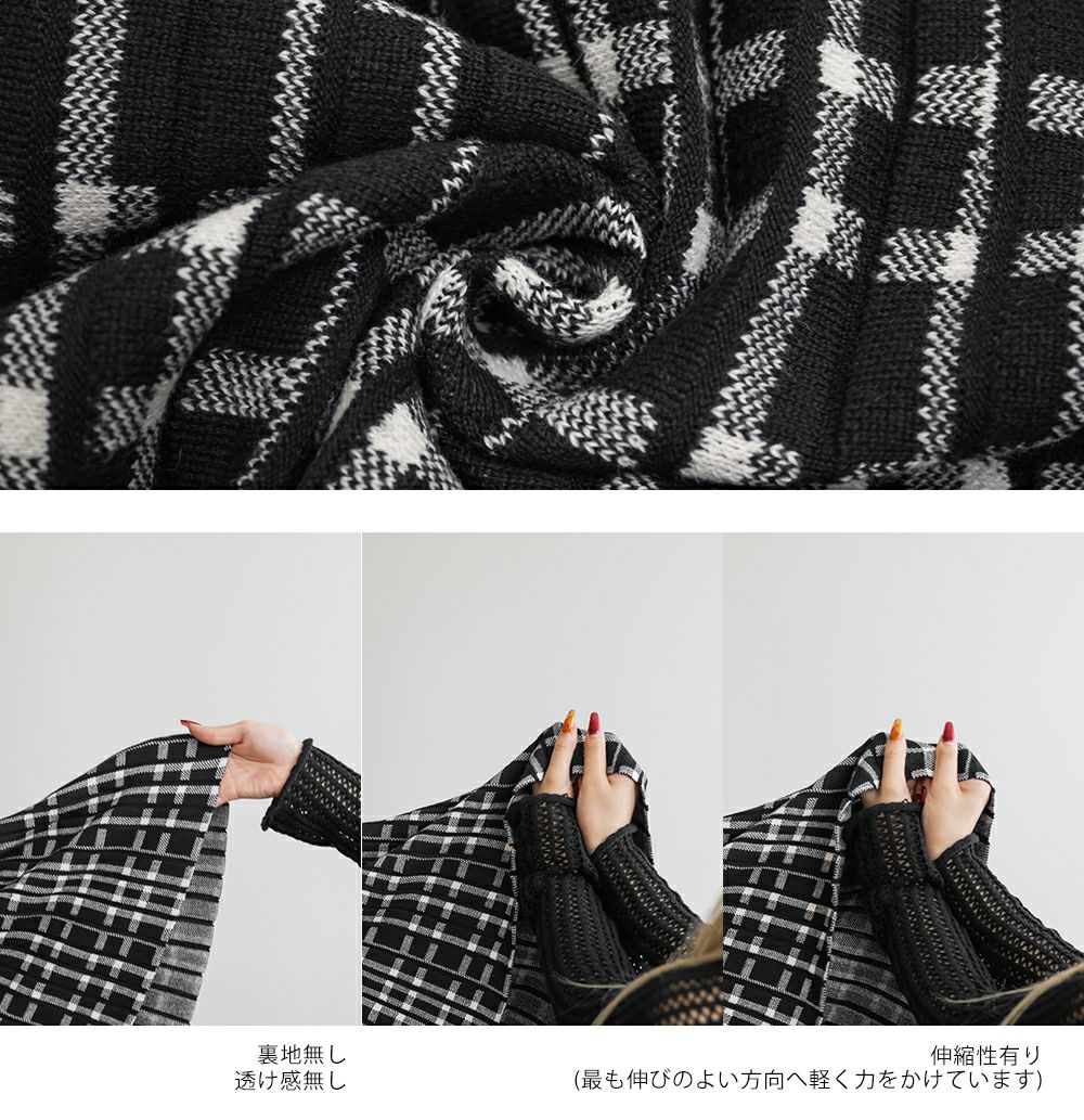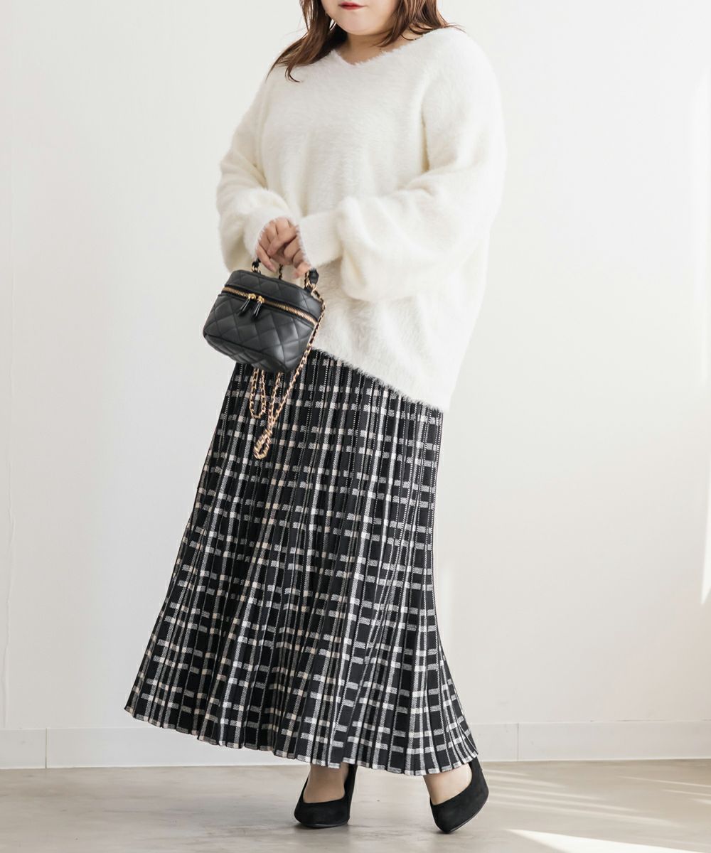 3Lサイズを着用して、程よくゆとりのあるサイズ感でした。伸縮性の良いニットなので動きやすく着用もらくらくでした!ニット×チェック柄が秋冬ムード満載でかわいいです!裾に向かってほどよく広がる美しいシルエットが魅力です◎