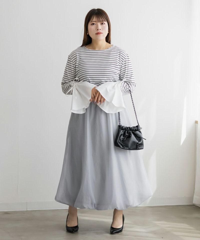 3Lサイズを着てちょうどいい着心地でした!ウエストはゴムでらくちんだし、程よくフレアに広がるシルエットなので窮屈に感じることはなかったです♪トレンド感たっぷりのバルーンスカートで、シアー生地が大人フェミニンコーデにピッタリです!広がりすぎないデザインなので、スタイリングもしやすく、おしゃれな雰囲気にも◎フェミニンコーデからカジュアルまで使えて、春夏らしい清涼感のあるスカートなので、お出かけやデートに着ていきたい1枚です♪