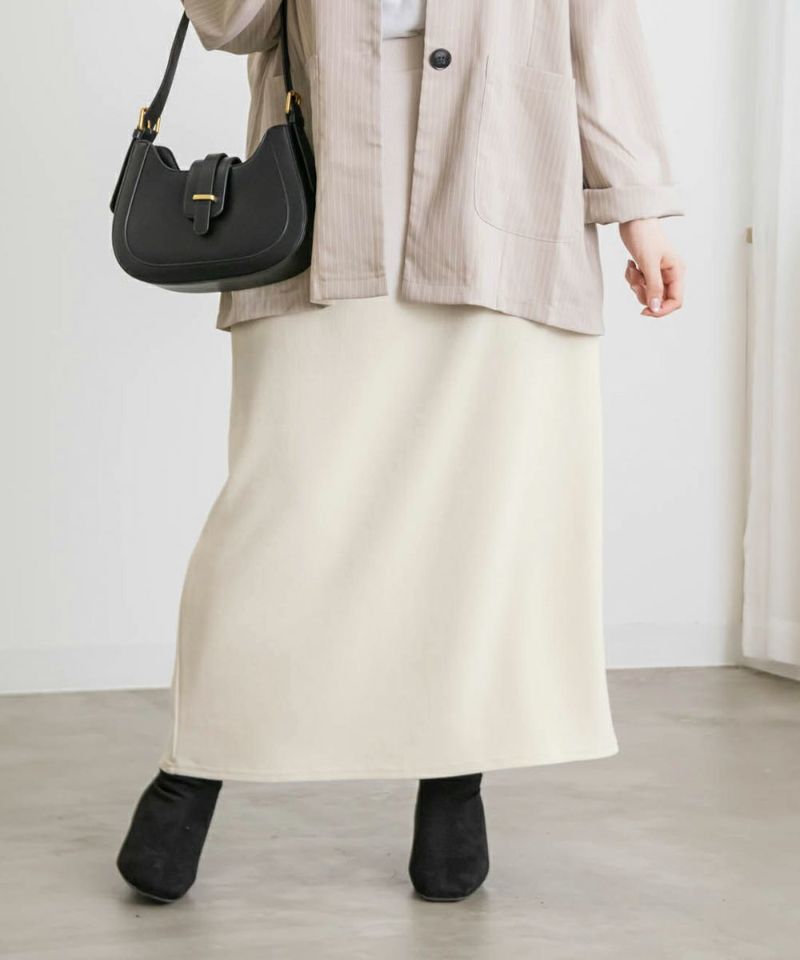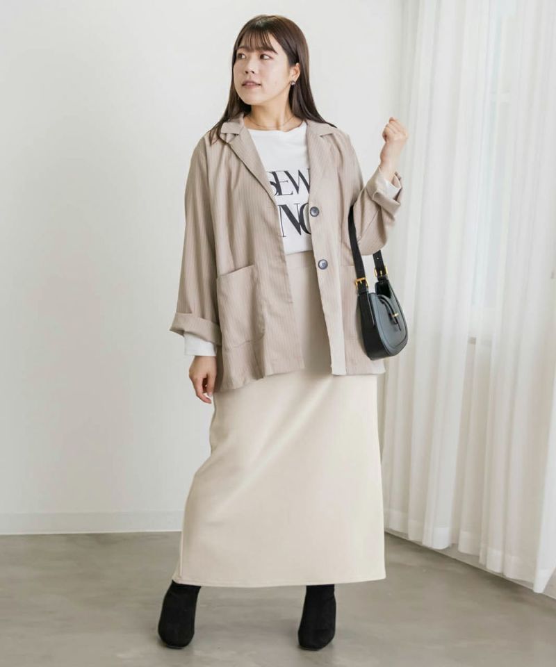 3Lサイズを着用してちょうどいいサイズ感でした。すっきりしたシルエットのスカートですが、スリットと伸縮性もあるので動きやすく着心地はらくちんでした!合わせるだけでこなれ感がでるお洒落なアイテムです♪