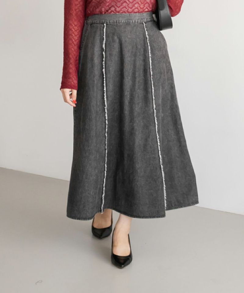 3Lサイズを着用てちょうどよいサイズ感でした!後ろゴムで窮屈感無く着脱も問題なくできました。縦に入ったフリンジが、すっきりと華奢に見せてくれます。カジュアルなデニム素材ながら、女性らしいマーメイドラインのスカートにデザインされていて、幅広いイメージで着こなせます!軽いデニム生地なのでごわつきにくいのも嬉しい!カジュアルコーデからキレイめまで合わせられるのでトップスを選ばず着用していただけます!