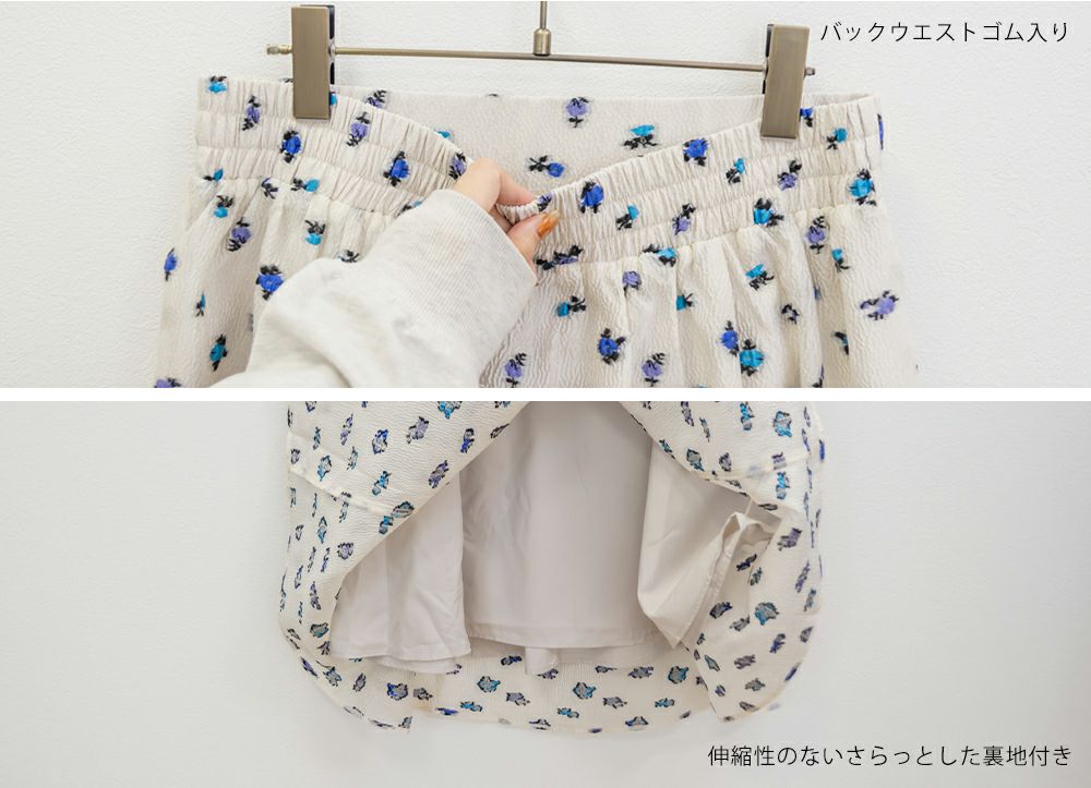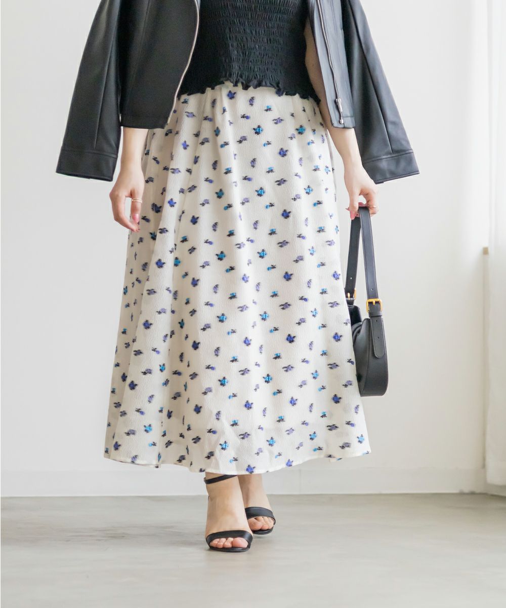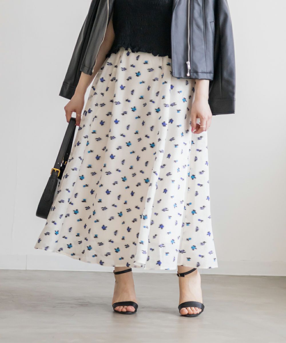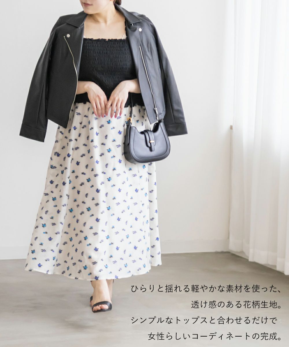 3Lサイズを着用しました! ウエストは後ろゴム仕様でフィット感がありながらも、締め付け感がなく快適な履き心地でした! タックがしっかり入ったデザインなので、ふんわりと立体的なシルエットになり、気になる腰まわりもカバーしてくれます。 軽やかなシアー素材に上品な花柄が施されていて、動くたびにふわっと揺れるのが魅力◎ 透け感が程よく、大人っぽく高級感のある印象を演出してくれます。シンプルなトップスと合わせるだけでコーデが華やかになり、きれいめにもカジュアルにも着こなしやすいのが嬉しいポイント♪ シアー感があるので重たくならず、季節を問わず長く楽しめる一枚です! 足元はパンプスできれいめに仕上げるのはもちろん、スニーカーと合わせてカジュアルダウンするのもおすすめです!花柄スカートが好きな方や、上品な雰囲気のスカートをお探しの方にぴったりのアイテムです!