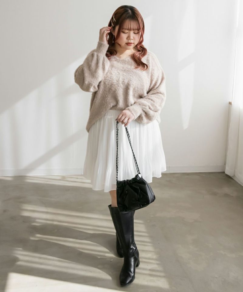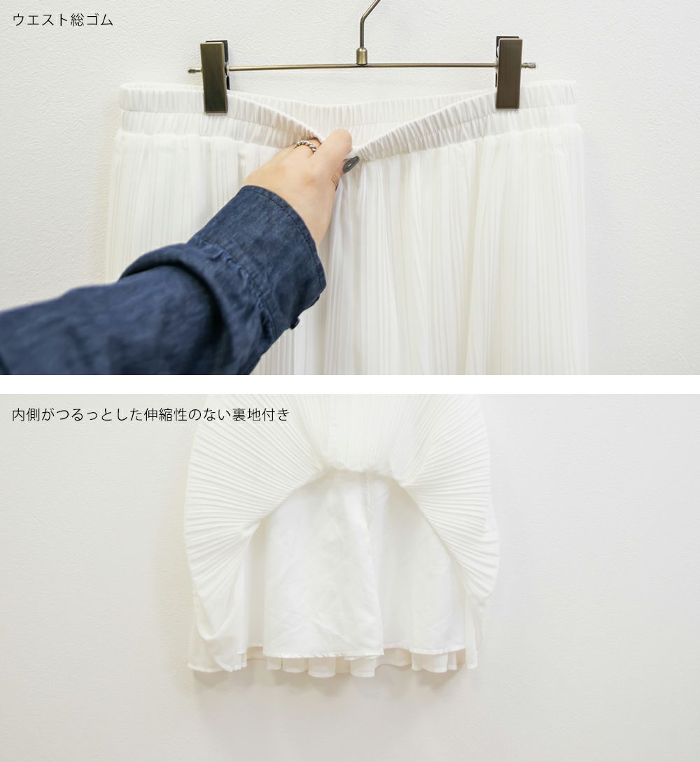 3Lを着てちょうどいいサイズでした。ウエスト総ゴムになっていて、着心地も軽いからストレスフリーで着ることができました◎細かいプリーツ加工のスカートで、腰回り・お腹・お尻のまるみがカバーされて、足が細く見えるスカートです◎やわらかい生地だから、ゆるっとしたトップスの裾を出して着てもごわつきません!韓国っぽいスタイルやプレッピースタイル、フェミニンな印象が好きな方にお勧めです♪
