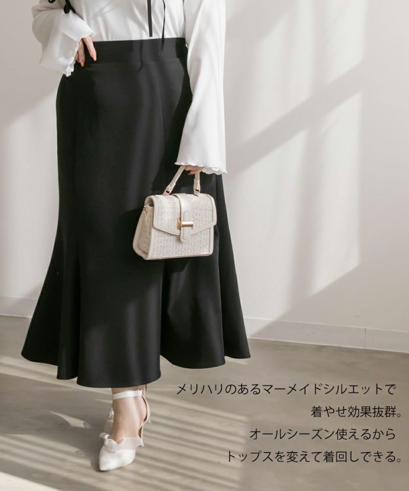 3Lを着用してちょうどいいサイズでした。着心地に窮屈感がなく、ヒップや太ももはピタッとしすぎないシルエットだったので肉感も感じず着用出来ました◎女性らしくキレイな印象のマーメイドスカートで、季節とわず着られるので1枚あれば色々な着回しができます!着回ししやすく大人っぽい綺麗なカラバリが可愛いです!ビスチェとセットアップ着用してワンピースっぽくコーデするのも可愛い!
