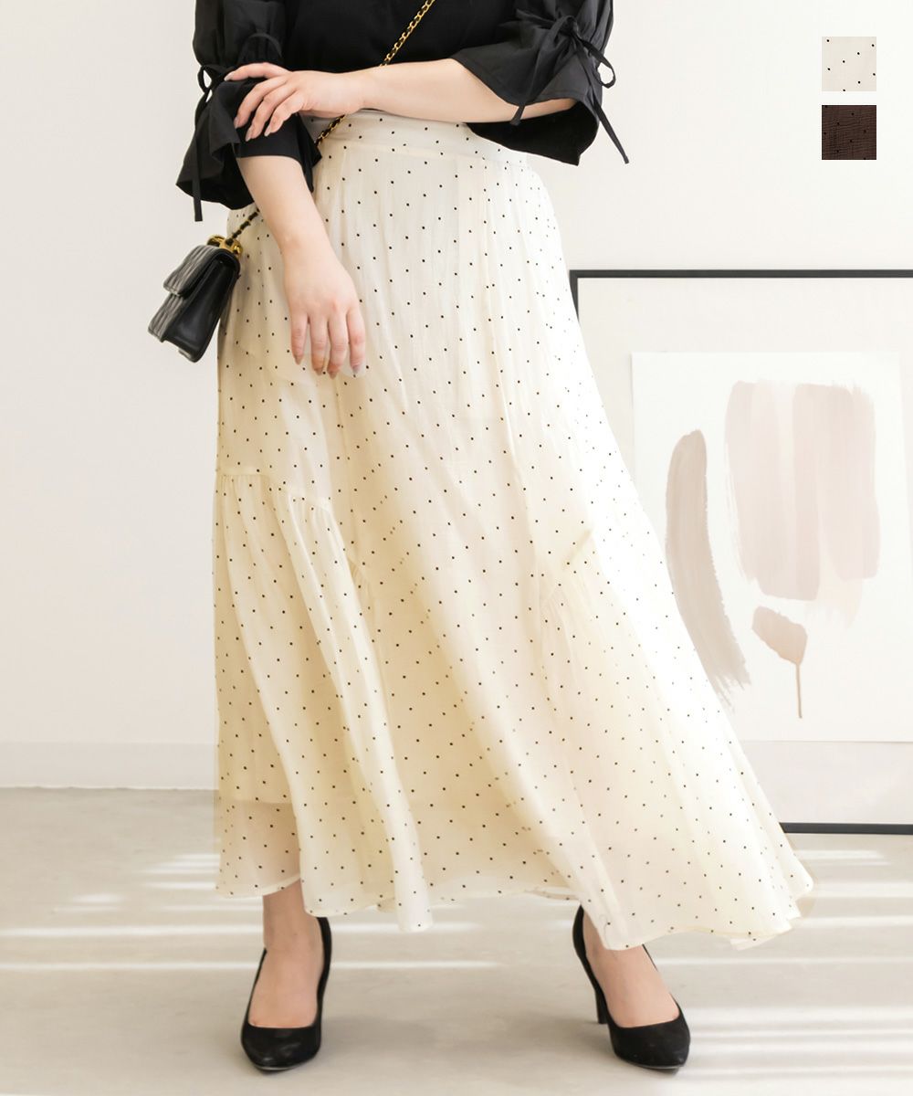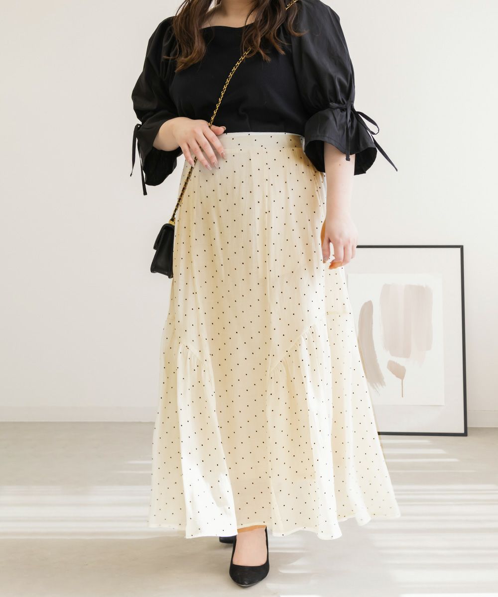 CLETTE オリジナル 水玉 ロングスカート シアースカート フレア LL 3L 4L クレット カジュアル フェミニン