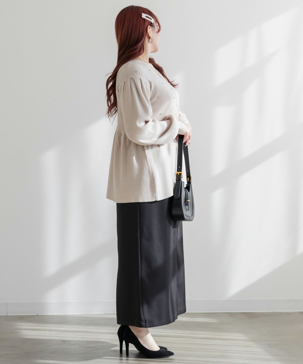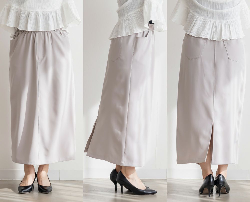 3Lを着て丁度いいサイズ感で、窮屈感なくらくちんな着心地でした!ストレスのなく着ていられる生地感でした!後ろにスリットがあって足さばきもしやすいです◎シンプルなデザインなので、色々なシーンで着回ししやすそうです。季節問わず使えるので1枚は持っておきたいスカートです!