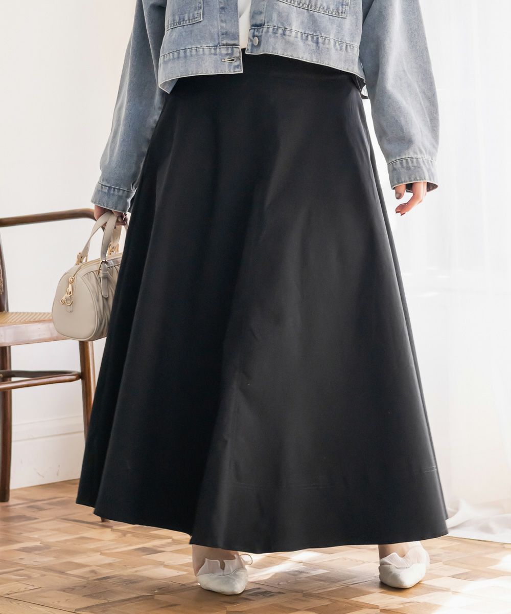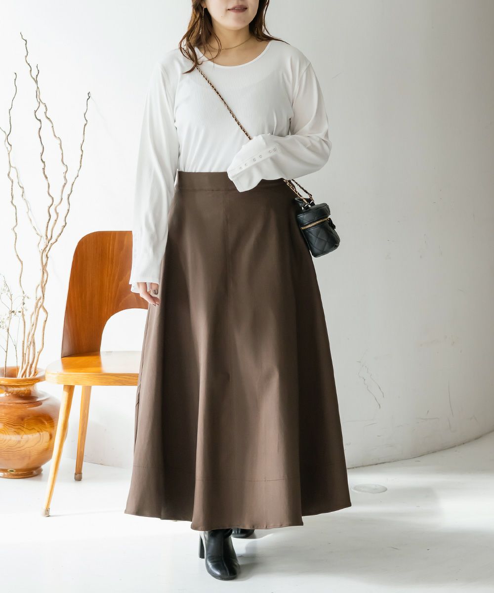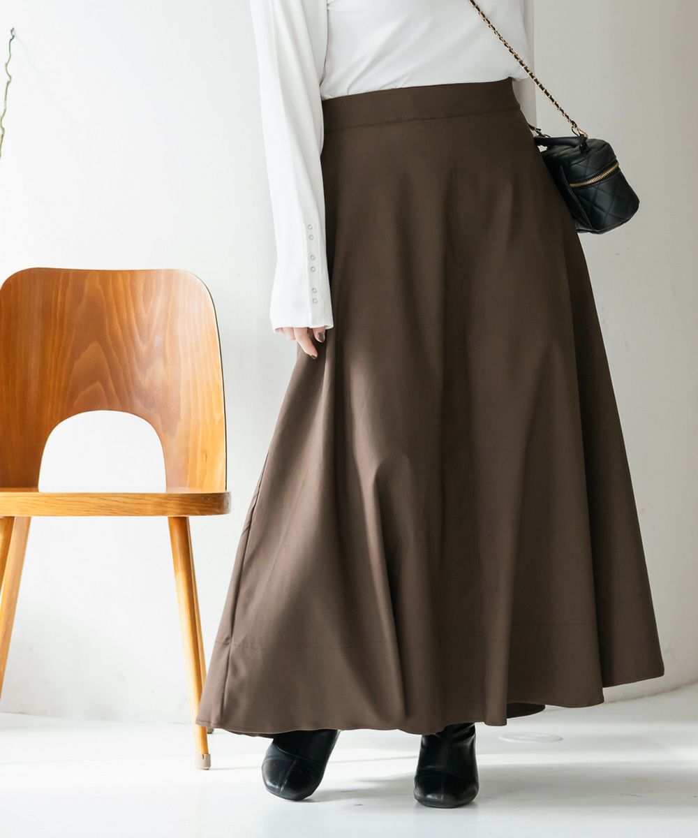 3Lサイズを着用しました。いつも着ているサイズ感と比べてちょうどよく、ウエストまわりも窮屈感なく安心して穿けました。たっぷりとしたフレアシルエットですが、広がりすぎず落ち感がきれいなので、下半身のラインを自然にカバーしてくれます!ロング丈でも重たく見えにくく、動くたびに揺れるシルエットがとても女性らしい印象に◎ シンプルなトップスを合わせるだけでコーデが完成するので、デイリーはもちろんお出かけにもおすすめです♪ ロングシーズン活躍してくれそうな1枚だと思いました。
