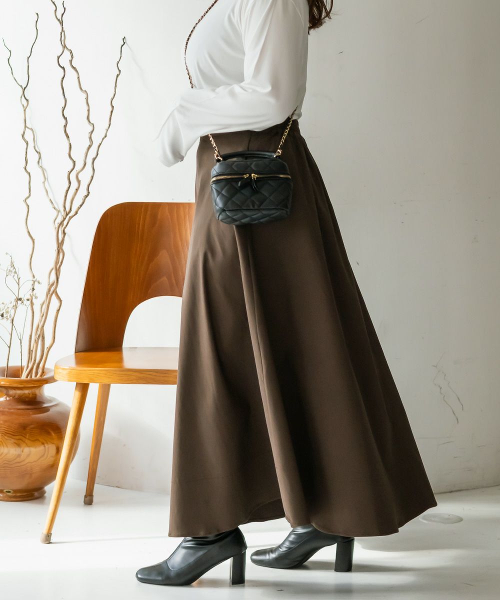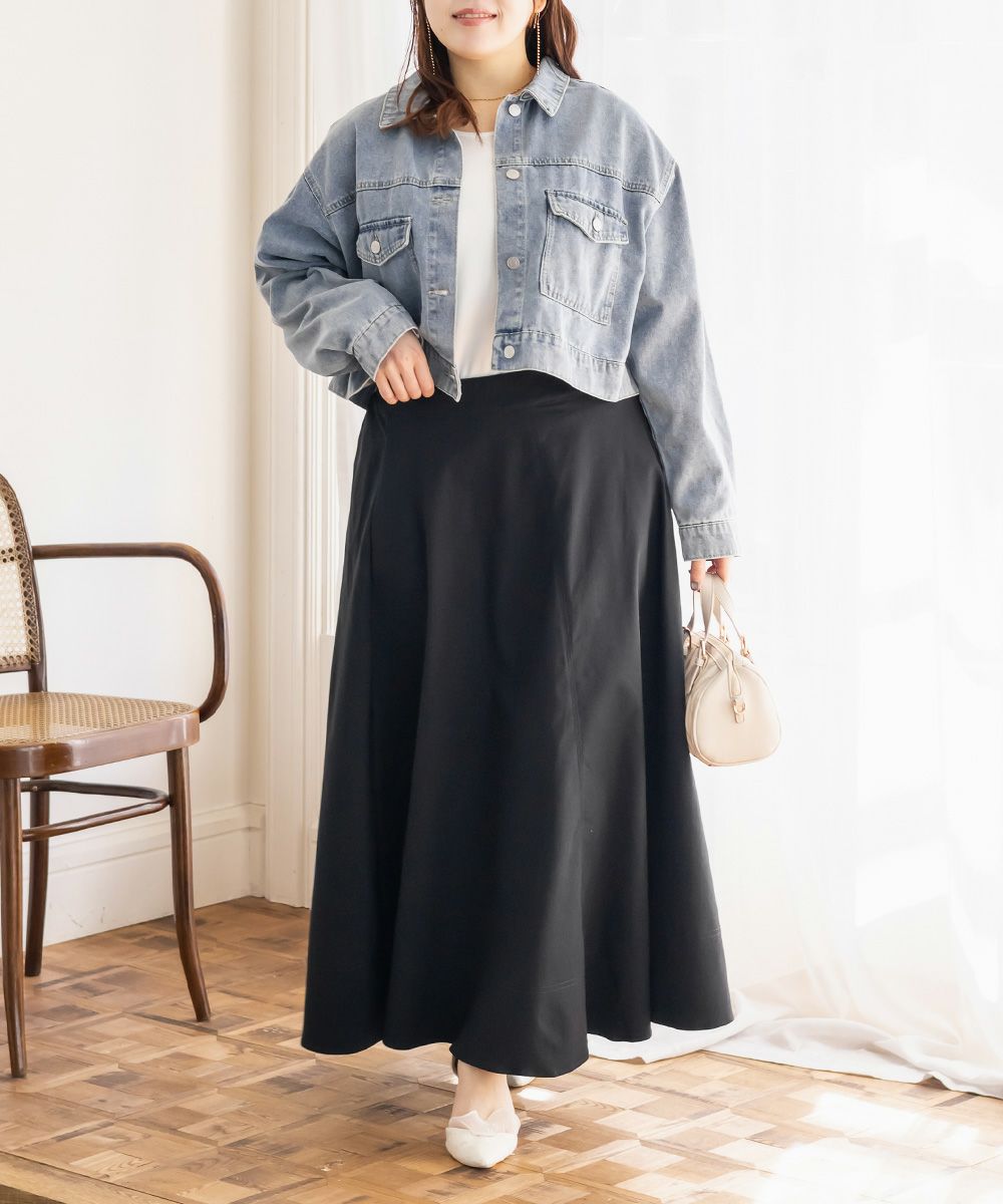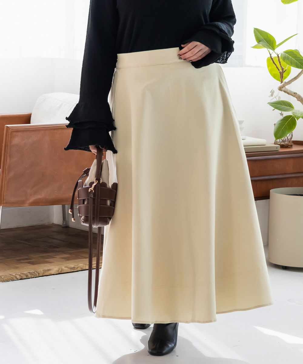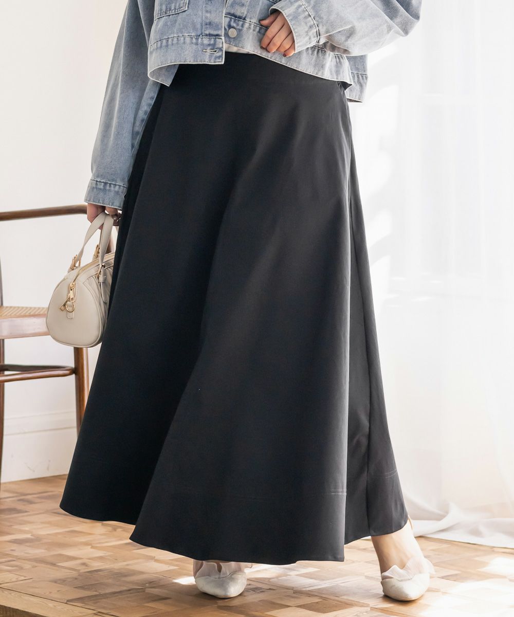 3Lサイズを着用しました。いつも着ているサイズ感と比べてちょうどよく、ウエストまわりも窮屈感なく安心して穿けました。たっぷりとしたフレアシルエットですが、広がりすぎず落ち感がきれいなので、下半身のラインを自然にカバーしてくれます!ロング丈でも重たく見えにくく、動くたびに揺れるシルエットがとても女性らしい印象に◎ シンプルなトップスを合わせるだけでコーデが完成するので、デイリーはもちろんお出かけにもおすすめです♪ ロングシーズン活躍してくれそうな1枚だと思いました。