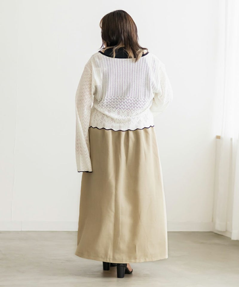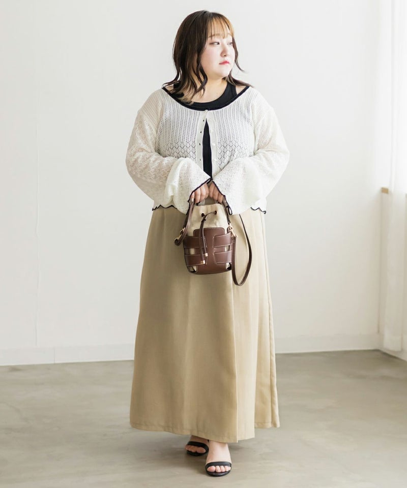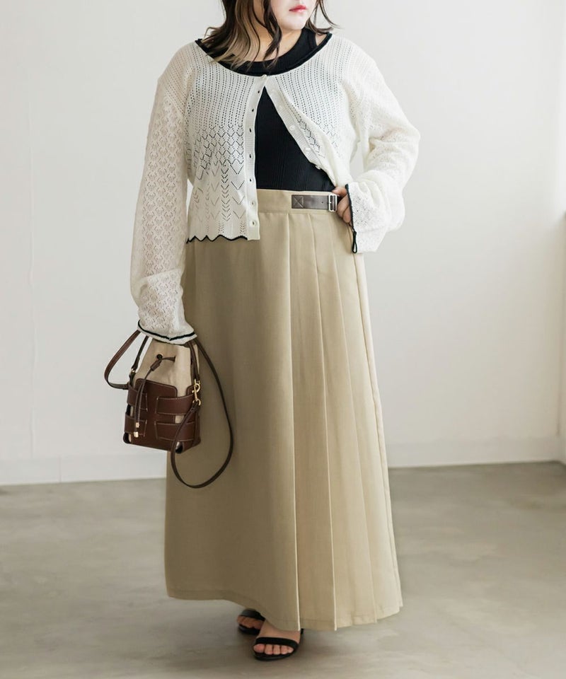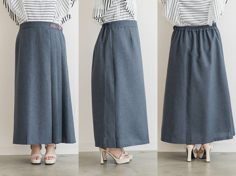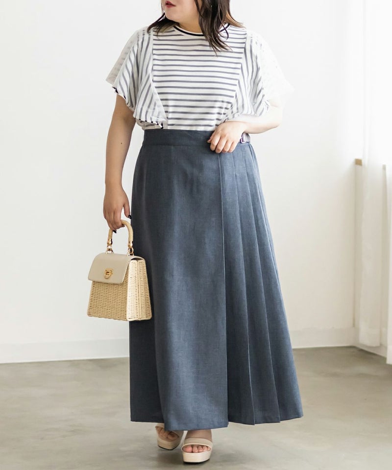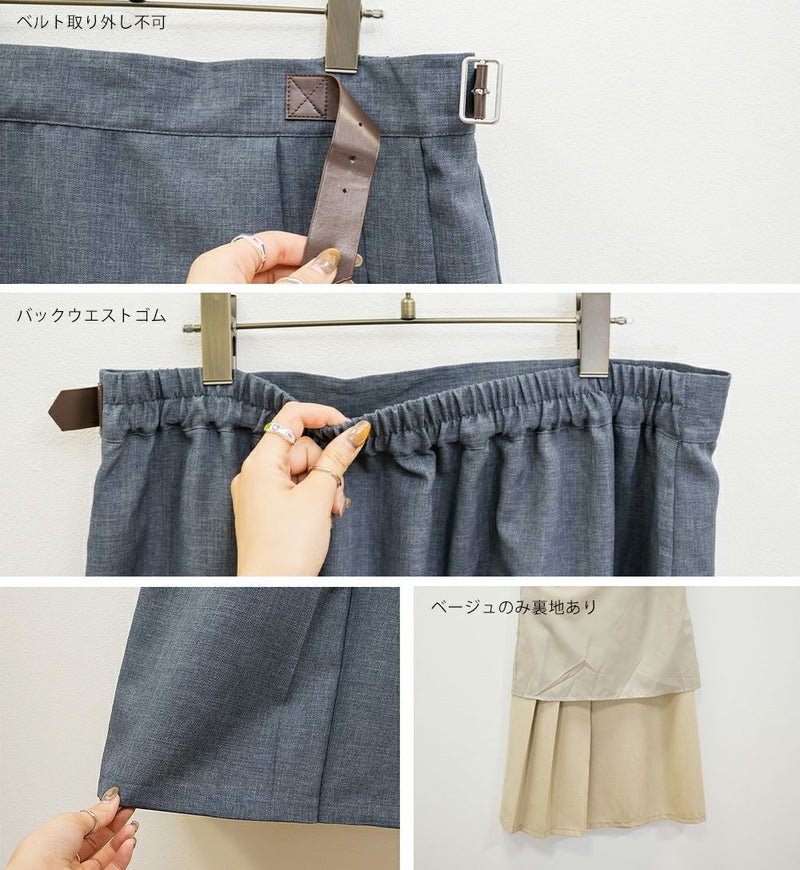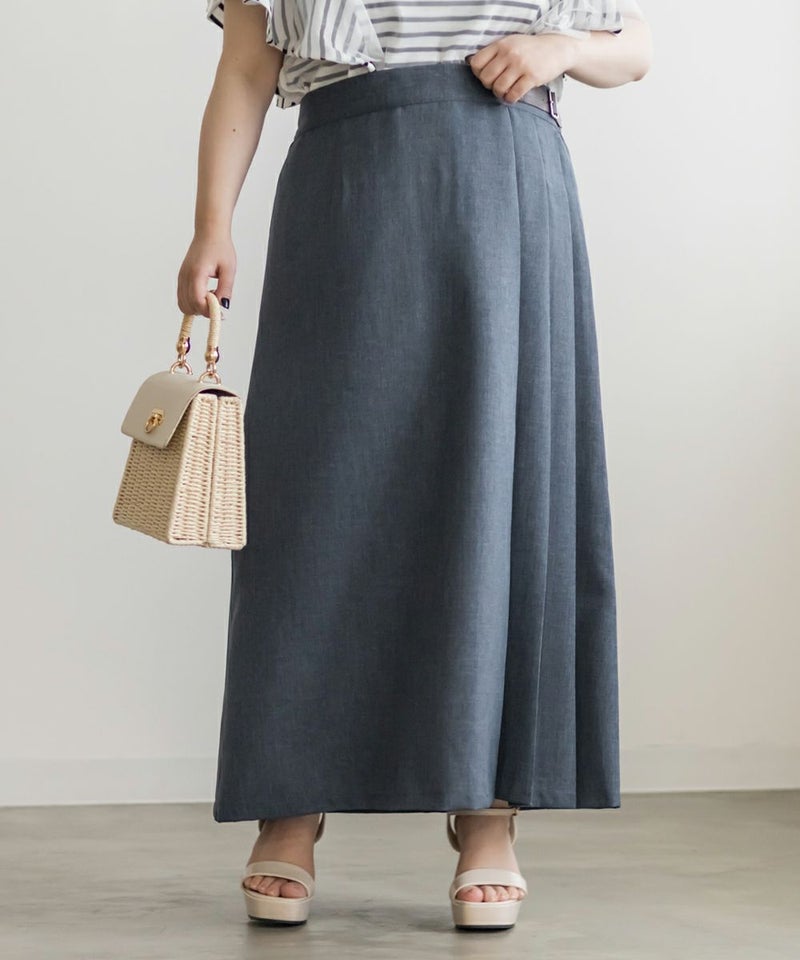 3Lを着て、程よくゆとりのある着心地でした。後ろはゴムになっていて、特に窮屈感はないです!サイドのベルトデザインとプリーツがラップスカートのような雰囲気で、上品で清楚な印象のスカートです。合わせるアイテムによってカジュアルにもフェミニンにもなれるので、色々なスタイリングが楽しめます!