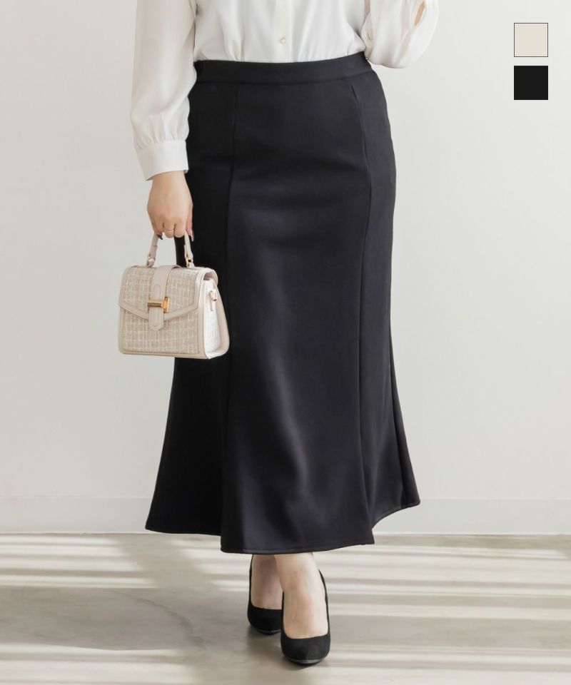 3Lサイズを着用して、ぴったりの着心地でした!ウエストは ゴム仕様なのと生地自体も程よく伸びるので安心感があり、ストレスなく過ごせそうです。マーメイドラインの裾は動くたびに揺れるシルエットが女性らしくきれいに見せてくれるのに締め付け感がないのが嬉しいポイントです!裏が温かみのある起毛素材になっていて、スカートでも防寒性がしっかりあるのが嬉しい!冬のオフィスコーデでにも良さそうです!シンプルトップスからブラウス、ニット合わせまで幅広くコーディネートを楽しめます◎ オフィスカジュアルから休日のおでかけスタイルまで大活躍の予感です!