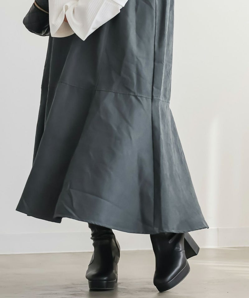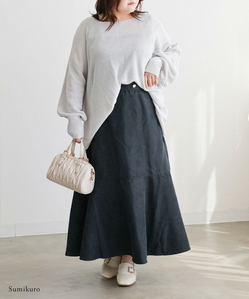 LLサイズを着用してぴったりのサイズでした。マーメイドシルエットだけどピタッとしすぎないサイズ感なのが嬉しいです!後ろゴム仕様なので着心地もらくちんでした!生地はとっても軽いので、動きやすく楽に着られるのも高ポイント◎切替から裾に向かって流れるマーメイドシルエットなので下半身を華奢にみせてくれます。長めのスカート丈も脚長に見え、お仕事や普段使いにピッタリな1枚です!
