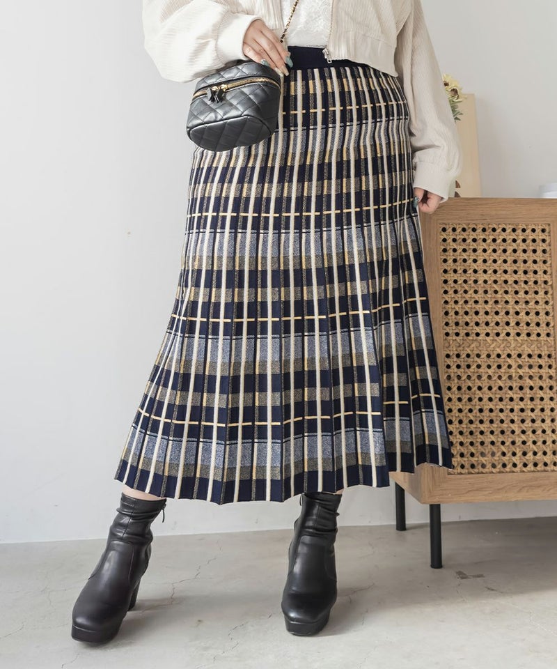 3Lサイズを着用して、ぴったりのサイズ感でした。伸縮性の良いニットなので動きやすく着用もらくに出来ました。ニット×チェック柄が秋冬ムード満載でかわいいです♪裾に向かってほどよく広がるフレアシルエットで、普段使いからお仕事まで活躍しそう!シンプルなトップスを合わせても映えるので1枚あるとコーデに大活躍しそうです◎