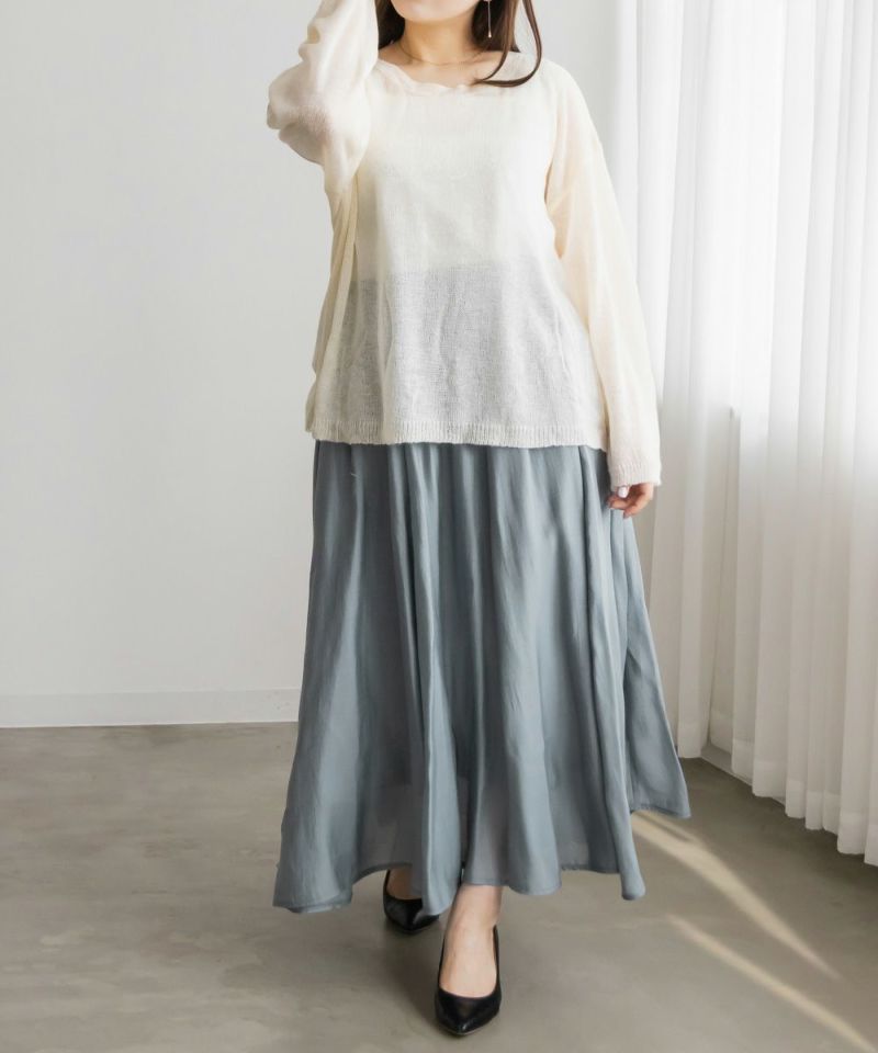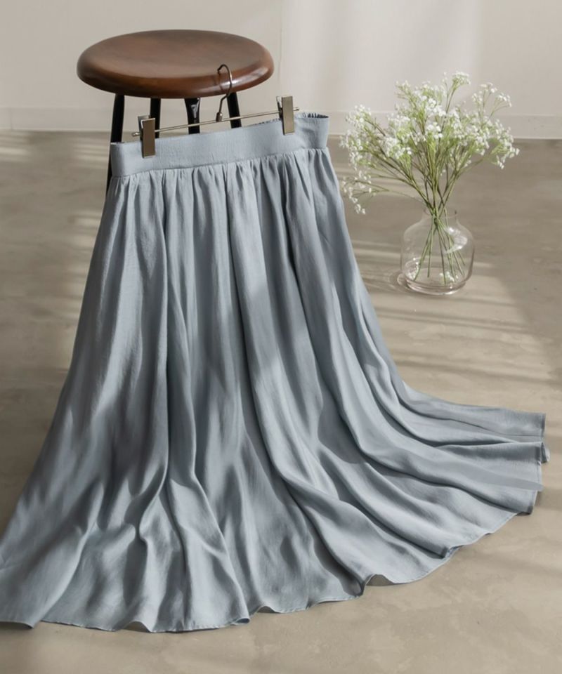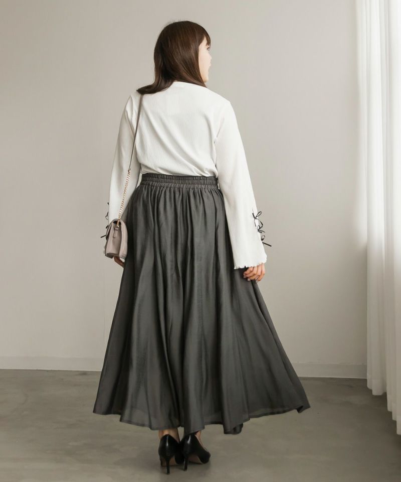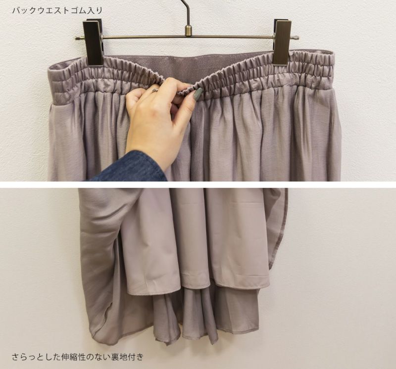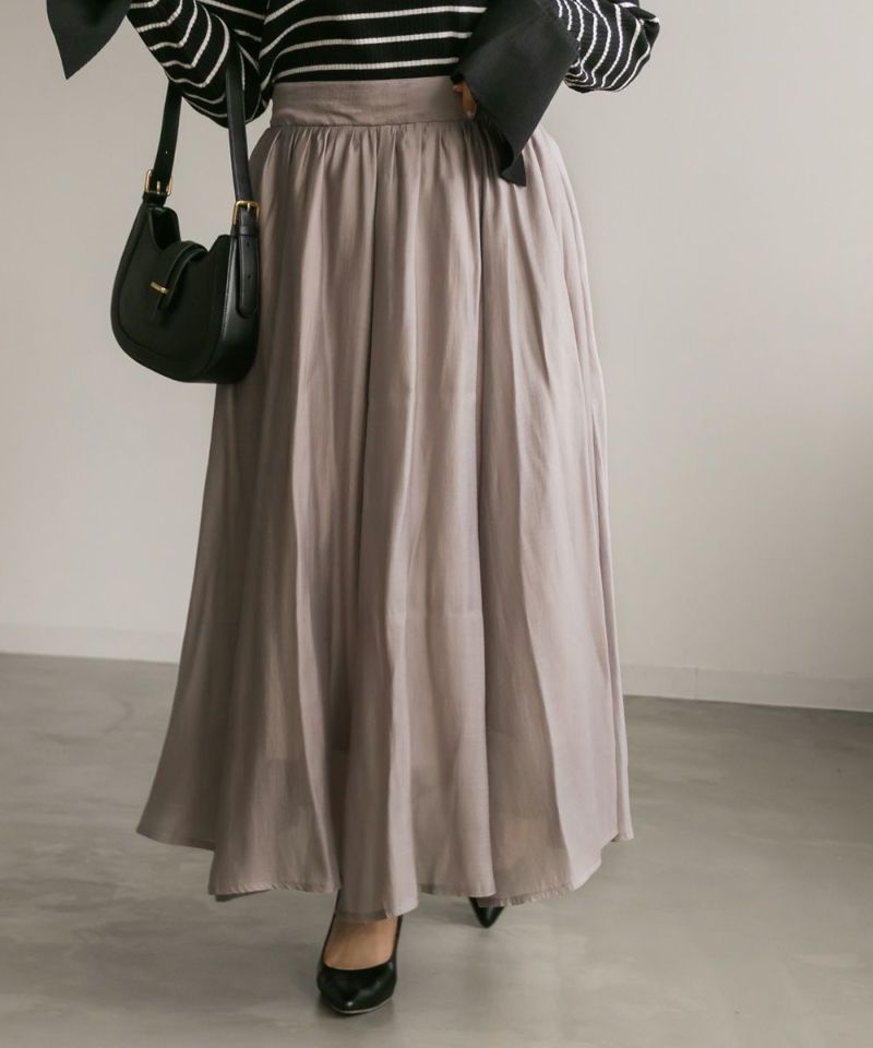 3Lサイズを着用して丁度いいサイズ感でした。後ろウエストは巾広めのゴムなので窮屈感のない着心地です◎たっぷりとしたギャザーがボディラインを拾わずに着られて綺麗なシルエットで着用出来ました。ウエストをキュッと見せてくれるフィット&フレアシルエットが歩くたびにゆれて女性らしいデザインです!さらりとした生地なのでオールシーズン大活躍します!