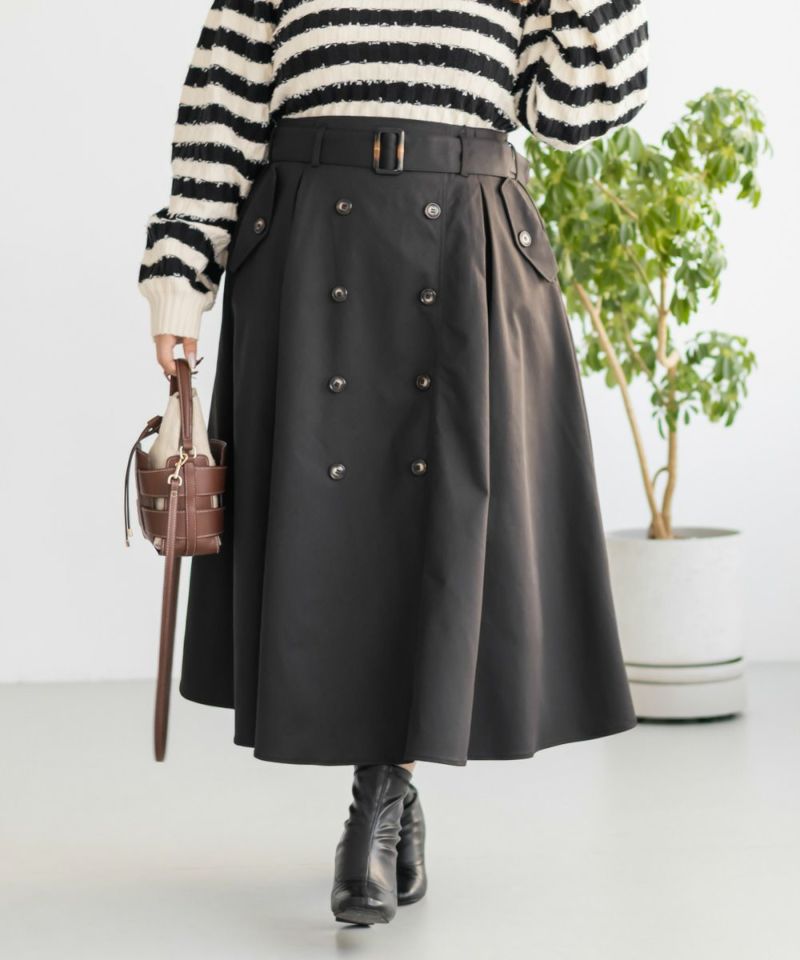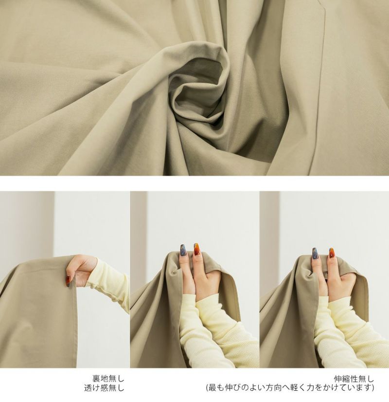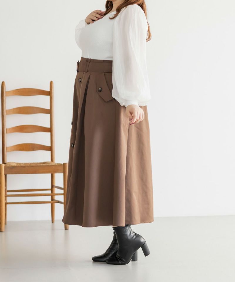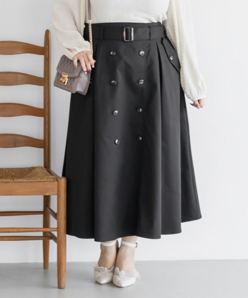 3Lを着て丁度いいサイズでした。後ろゴムなのとベルト付きでサイズ感は心配なさそうです!ハリのある生地で、Aラインのシルエットを綺麗に保ってくれます!トレンチデザインで清楚な着こなしにしてくれます♪シンプルなトップスと相性良く着られて、デートやお出かけなどにも活躍します◎