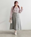 3Lを着て丁度いいサイズでした。程よくしっかりとしたデニム素材が腰周りやお腹のボディラインを拾わずにすっきりとみせてくれます!フロントはレースアップになっていて、お腹周りをカバーしてくれるデザインです!ポケットもついていて、のぺっとせずにメリハリのある印象にしてくれます!後ろゴムになっているので窮屈感も無く着られました。オールシーズン使えて、カジュアルにもフェミニンにも合わせやすい万能なスカートです◎