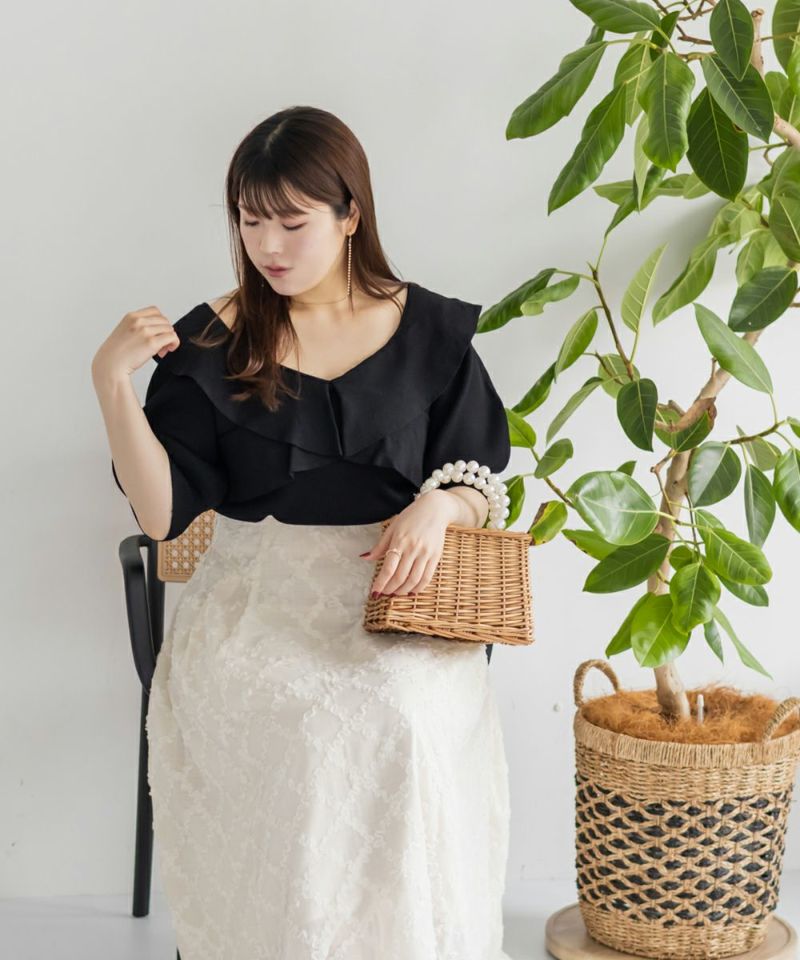 3Lサイズを着てみて丁度いいサイズでした!ウエストがキュッとして見えるハイウエストのデザインで着やせ効果が抜群なスカートです!ヒップや太ももなどが気になる方でも、裾に向かって綺麗に広がるシルエットのおかげでボディラインを拾わずスタイルアップして見えます。上品で大人っぽいシルエットと何より生地がとってもかわいいです♪凹凸があるのでシワも気になりにくいのが嬉しいです!甘すぎず、コーデに取り入れやすいので、上品な雰囲気にもガーリーにもなれます◎デイリーにもお出かけにも使える主役スカートです!