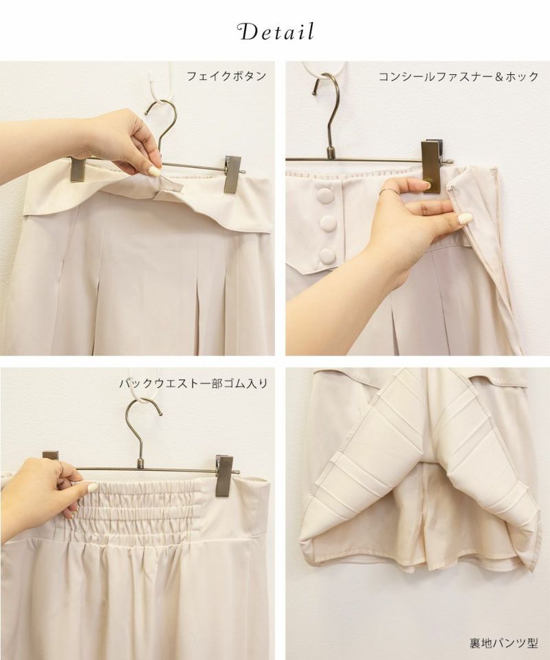 3Lを着用してジャストサイズでした。後ろウエストゴムになっていて窮屈感の無い着心地で、しかも裏地がパンツタイプなので着用時も安心感があって嬉しいです◎大き目プリーツデザインだから子供っぽくならず、ミニ丈でも落ちつた印象で着ることが出来ます。季節問わず使えて、フェミニンスタイルはもちろん、トラッドっぽい雰囲気や、韓国っぽい着こなしが好きな方にもお勧めしたいスカートです!
