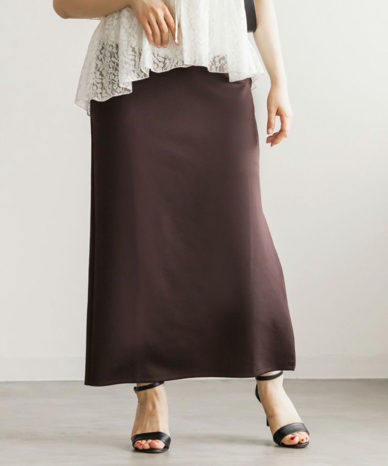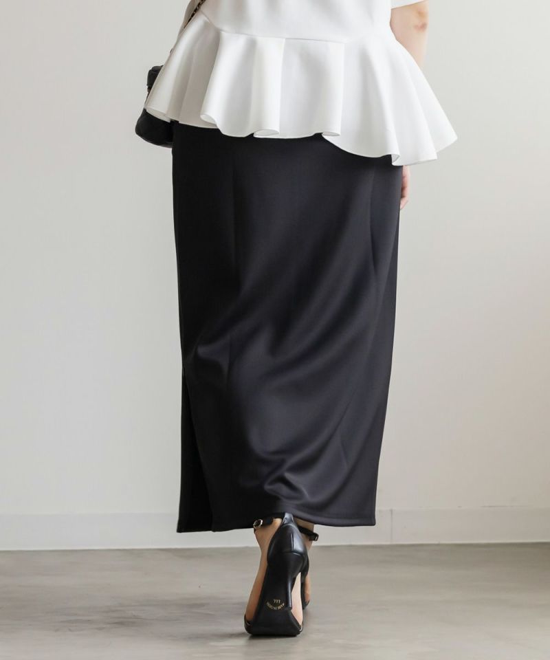 3Lを着て丁度いいサイズ感で、窮屈感なくらくちんな着心地でした!いつものナロースカートよりは少しタイトなシルエットですが、ストレスのなく着ていられる生地感で、後ろもゴムだから窮屈感もありません◎スリットはファスナーで自分好みで開けられるのもポイントです!閉めても見えにくいコンシールファスナーなのが嬉しいです!シンプルなデザインだから色々なトップスと合わせやすく、季節問わず使えるので1枚は持っておきたいスカートです!