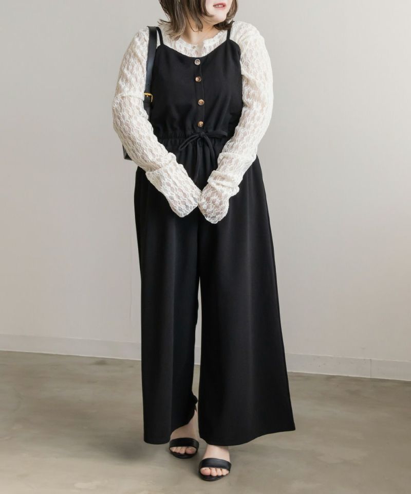 ボタンデザインサロペット サロペット 大きいサイズ クレット プラスサイズ 3L 4L ボタンデザインサロペット