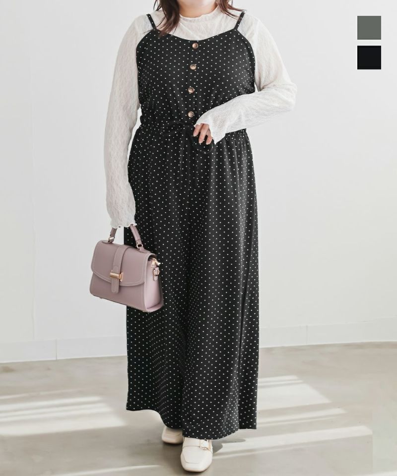 3Lサイズを着用して、ゆとりのあるサイズ感でした。3Lのサイズ感です。とってもらくちんなのに、すっきり細見えできるサロペットです!インナー次第でオールシーズン着用できる着心地で着回しがたくさんできそう◎さらっと着こなして大人っぽくこなれ感のある雰囲気になれる1枚です。