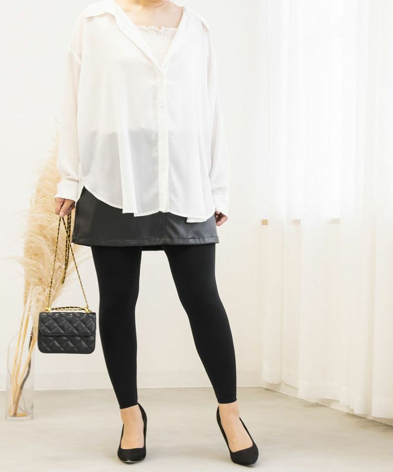 3L-4Lサイズを着ました。普段サイズ表記よりも小さいLLサイズを着ているので大きいかなと思ったのですが問題なく着用できました。というのも、縦にも横にも驚くほど良く伸びる生地で穿く人の体型に合わせてフィットしてくれる感覚です。柔らかく伸びがいいので足を物理的にシェイプしてくれるような機能はありませんが、穿くだけで美脚になったような細見え効果はしっかりありました◎裏側が肌触りの良い暖かなパイルになっていて寒い時期にピッタリのアイテムです。足元は靴下をはきたい方や、パンプスとあわせて美脚みせしたい方にお勧めのレギンスです!